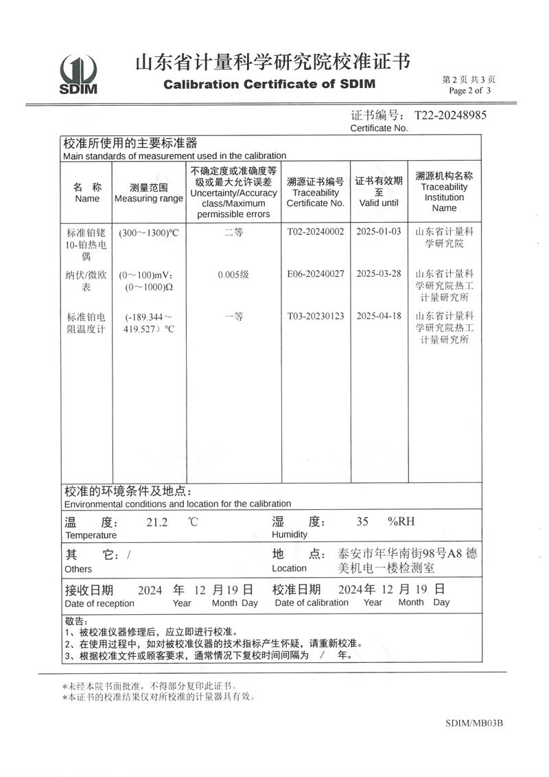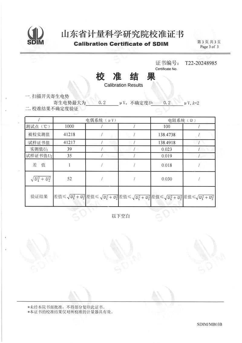 熱電偶、熱電阻自動(dòng)檢測(cè)系統(tǒng)校準(zhǔn)證書