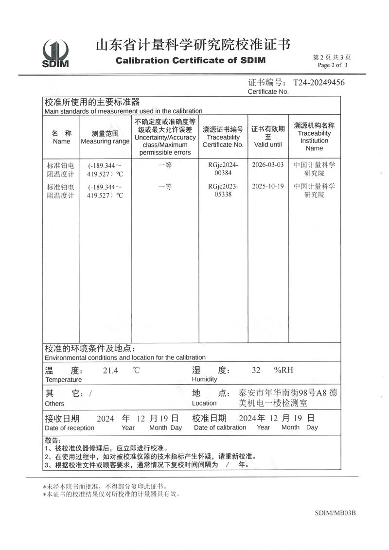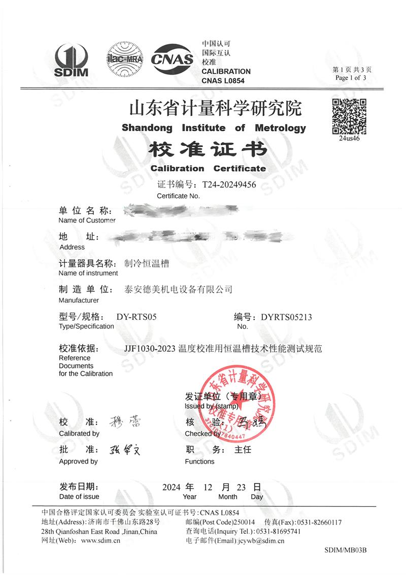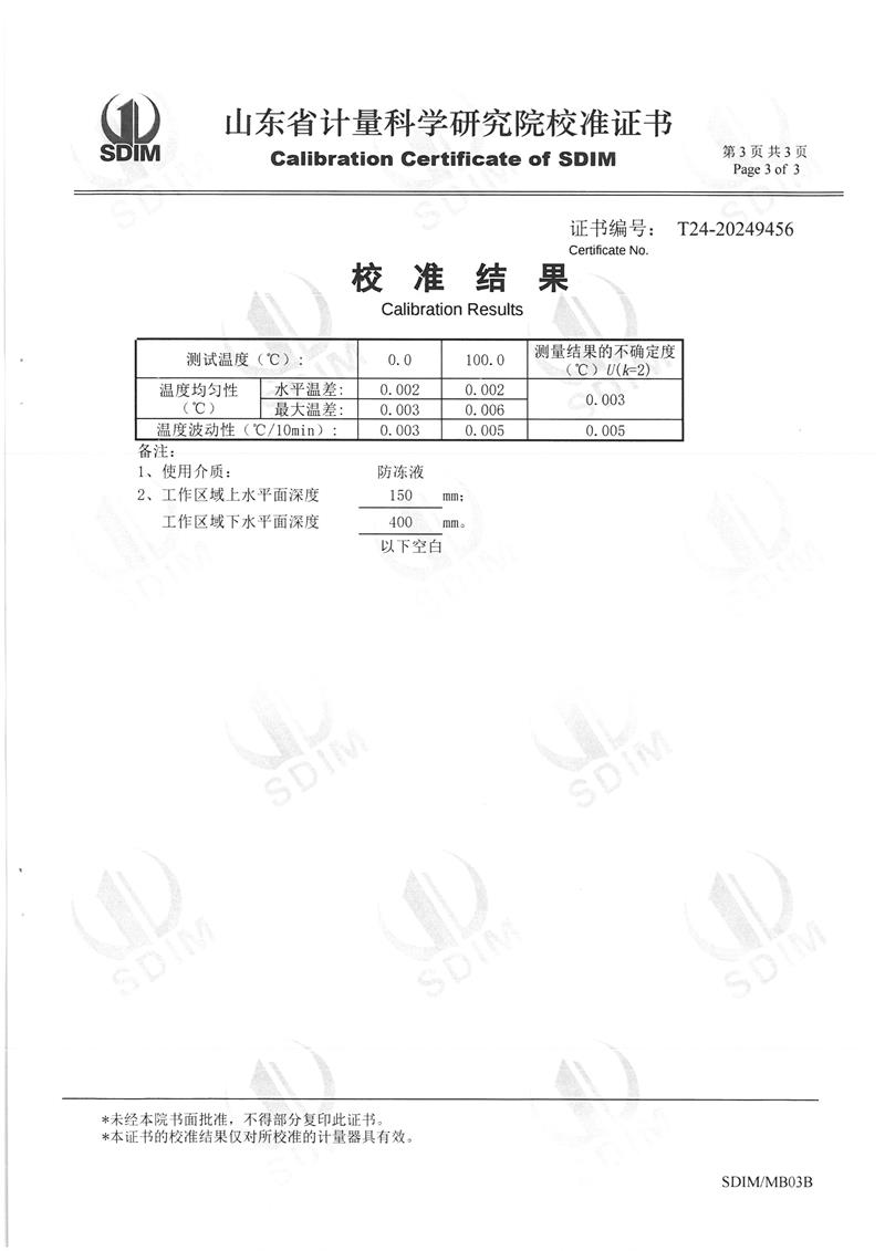 制冷恒溫槽(0~100℃)校準證書 2024-12-26 本文被閱讀 6878 次