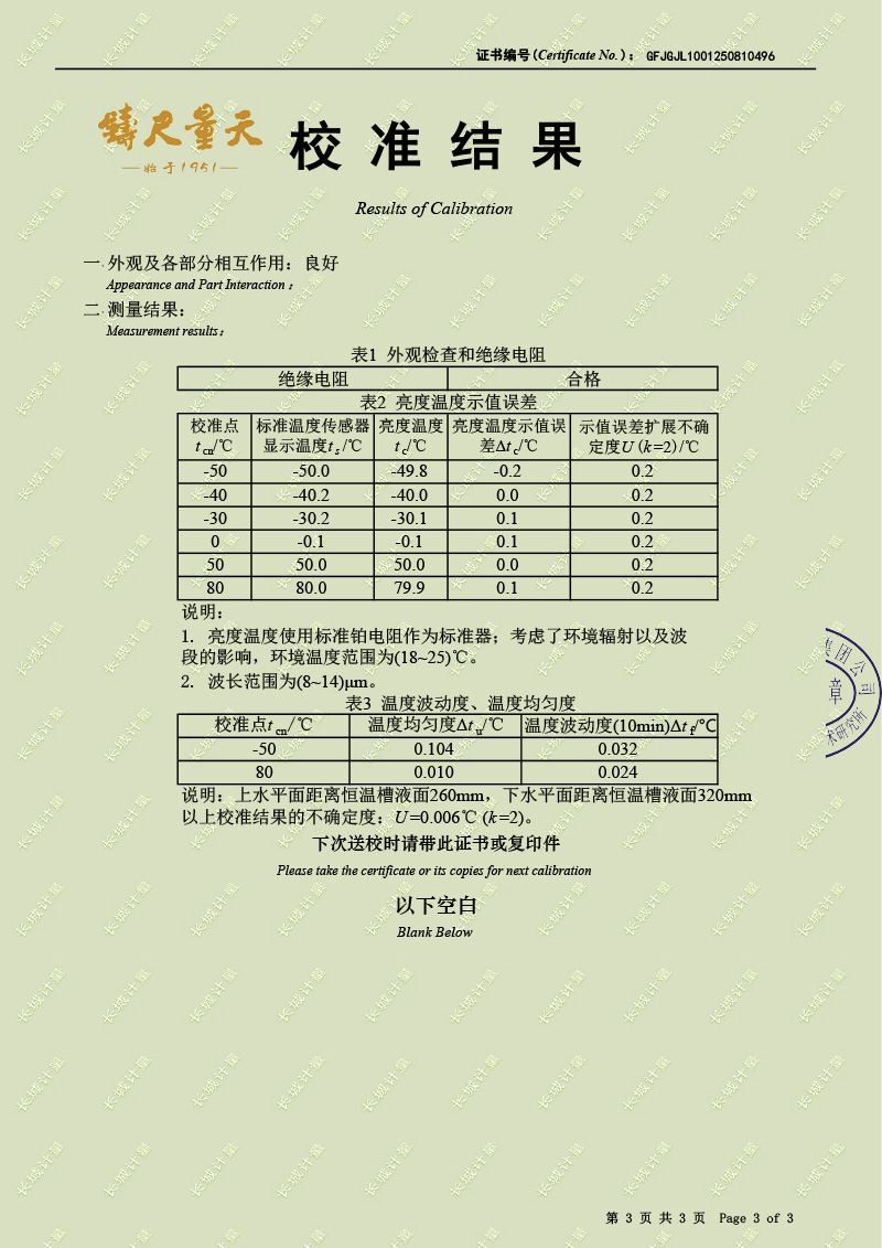 低溫浴式黑體輻射源(-55-80℃)校準(zhǔn)證書 2025-9-3 本文被閱讀 2606 次