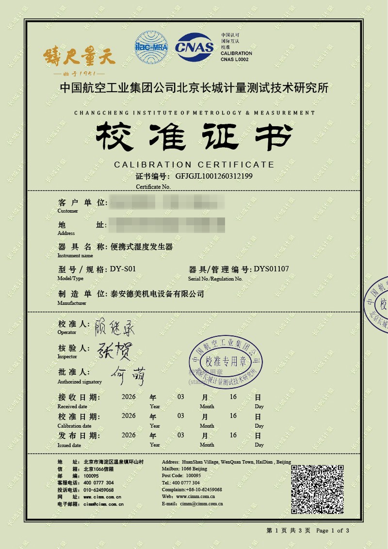 濕度發(fā)生器-校準(zhǔn)證書 2026-3-25 本文被閱讀 50 次
