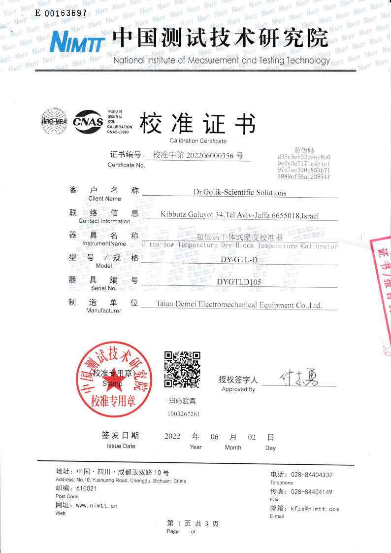 以色列-超低溫干體爐 2022-6-7 本文被閱讀 15299 次