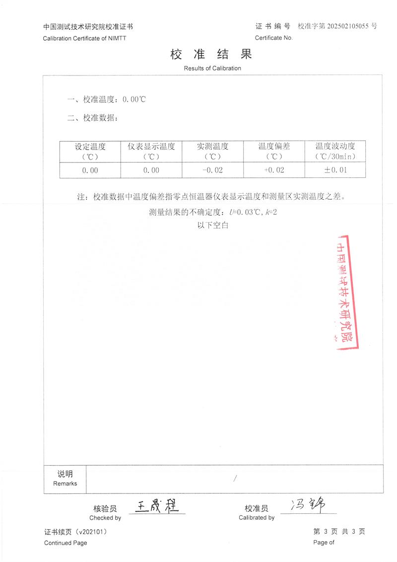 零點恒溫器校準(zhǔn)證書 2025-3-1 本文被閱讀 6424 次