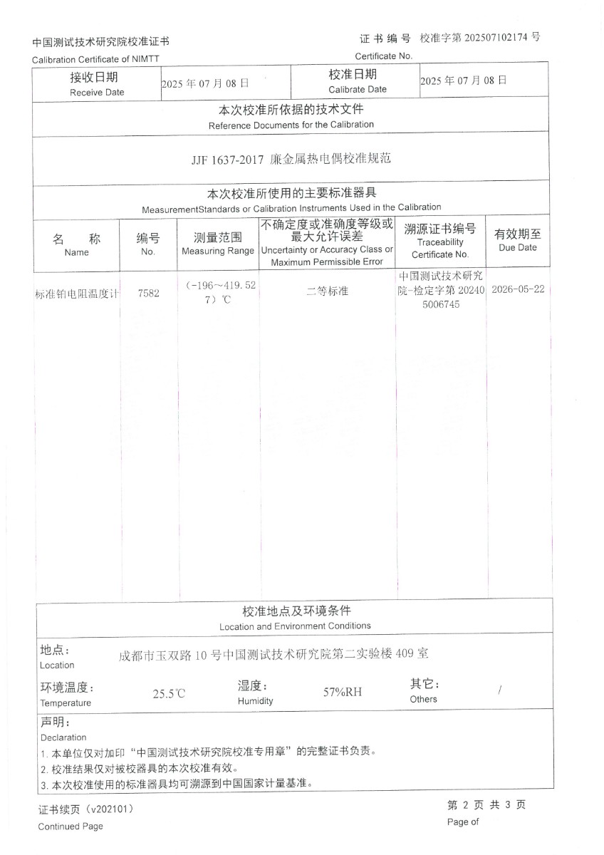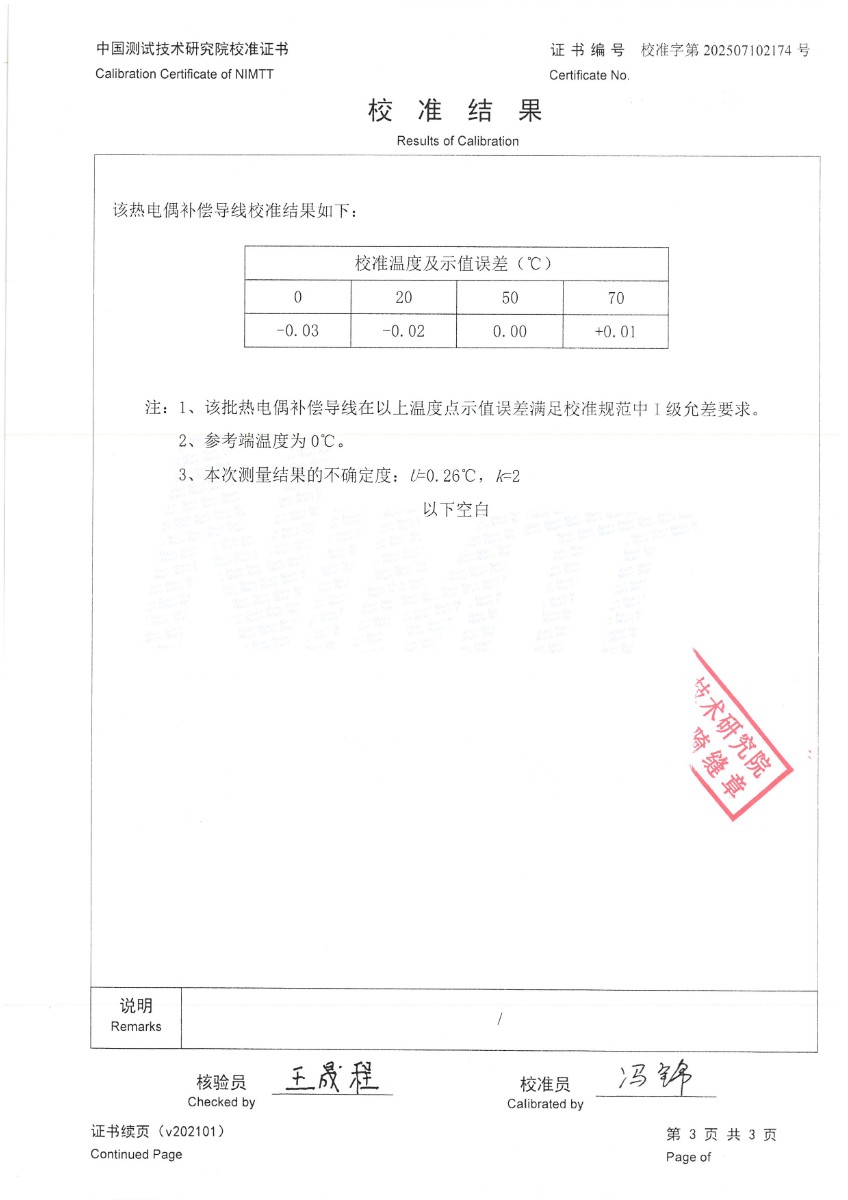 熱電偶補(bǔ)償導(dǎo)線(N分度)校準(zhǔn)證書 2025-7-10 本文被閱讀 3514 次