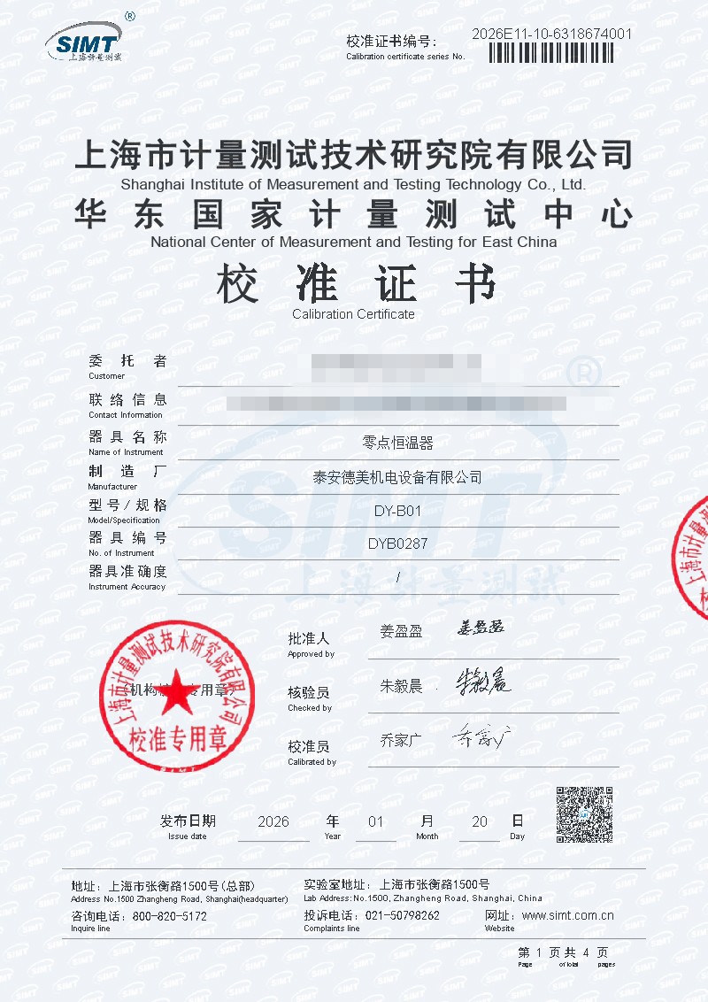 零點恒溫器-校準證書 2026-1-26 本文被閱讀 445 次