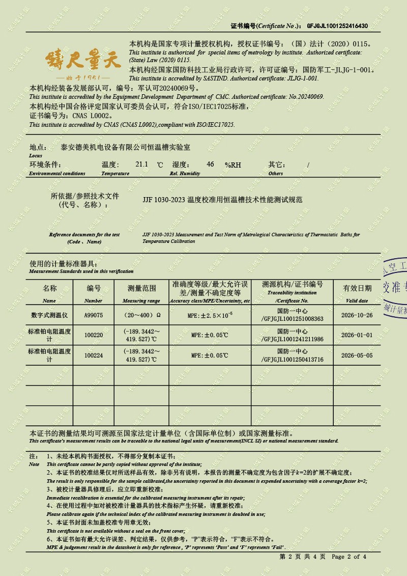 高精度制冷恒溫槽(0~100℃)-校準(zhǔn)證書 2025-12-19 本文被閱讀 1261 次