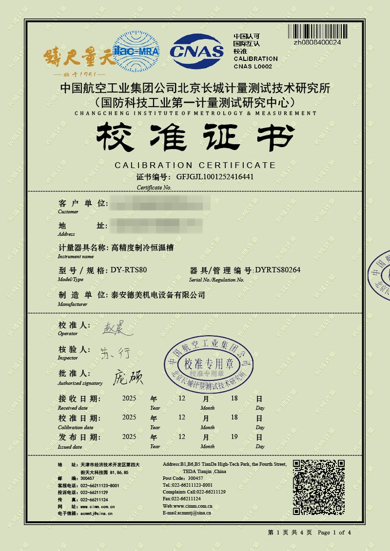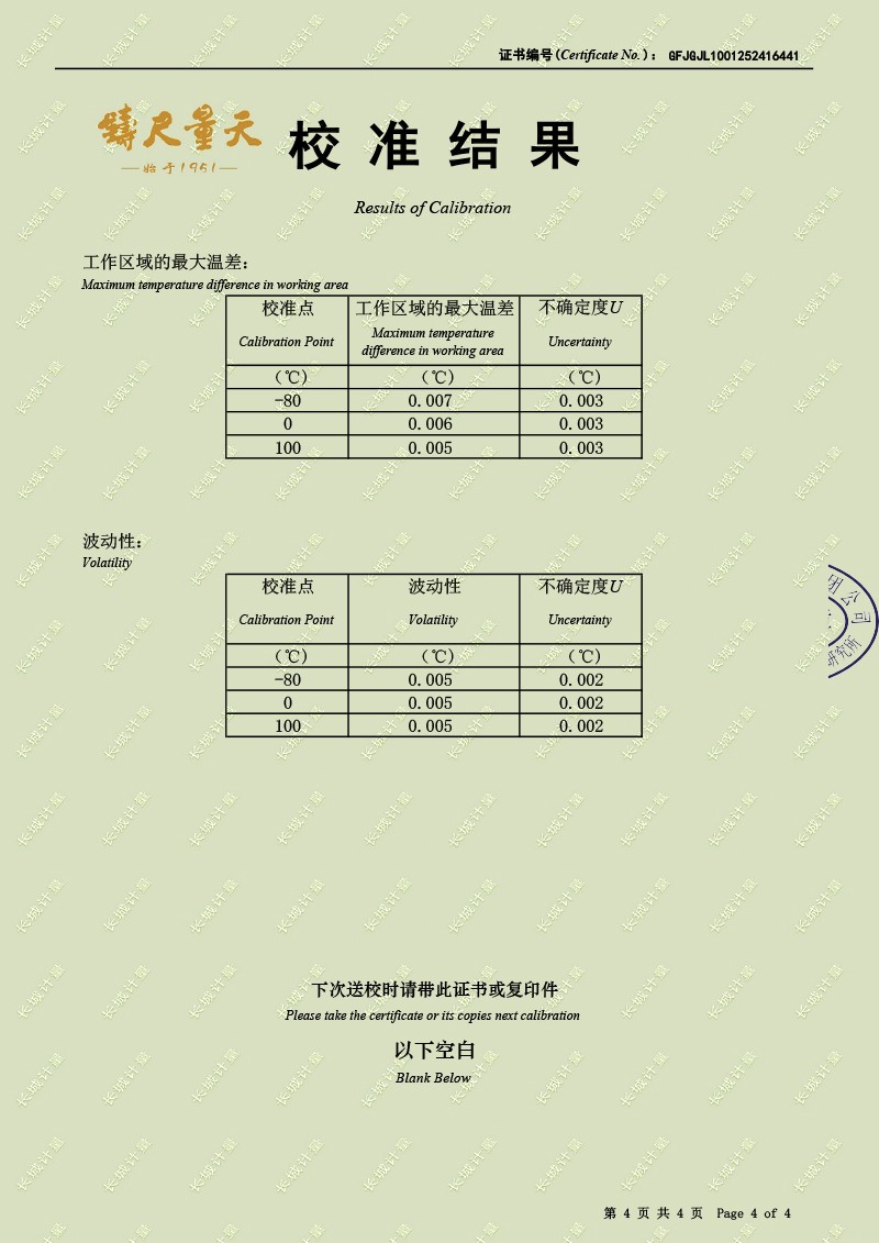 | 上一條:高精度制冷恒溫槽(0~100℃)-校準(zhǔn)證書 | 下一條:低溫干體爐-校準(zhǔn)證書 |