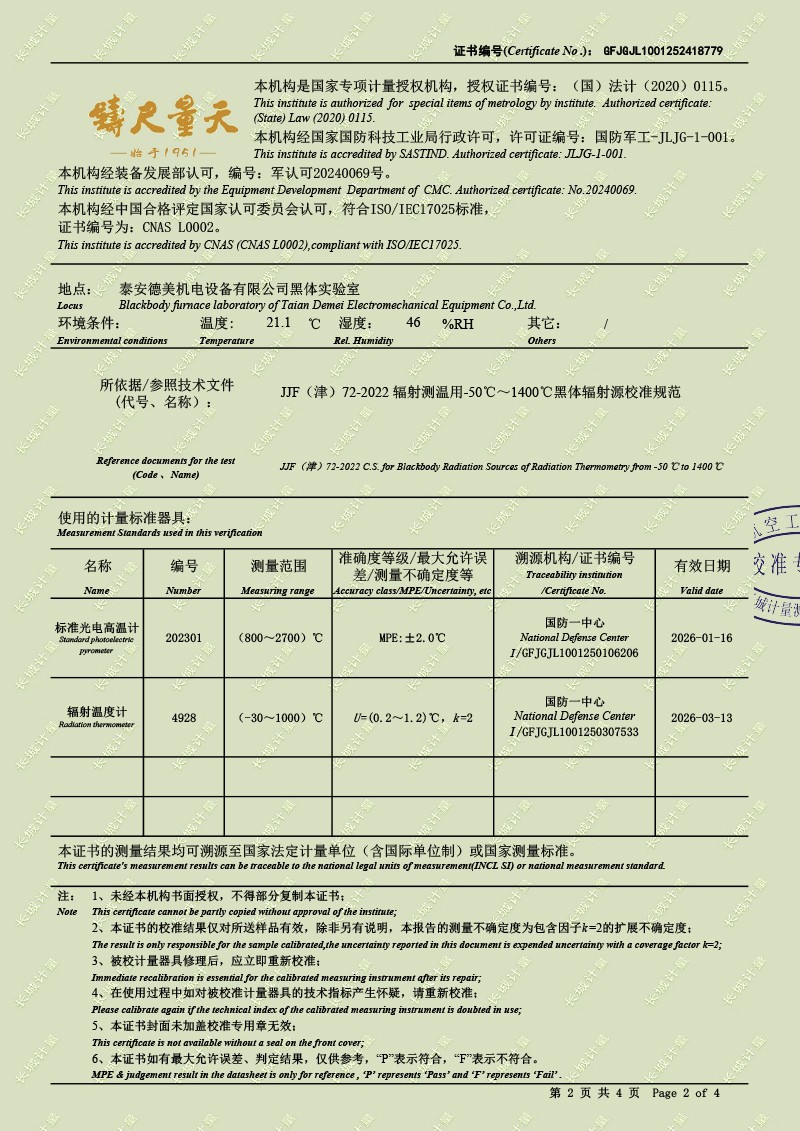 黑體爐DY-HT3校準(zhǔn)證書 2026-1-4 本文被閱讀 854 次