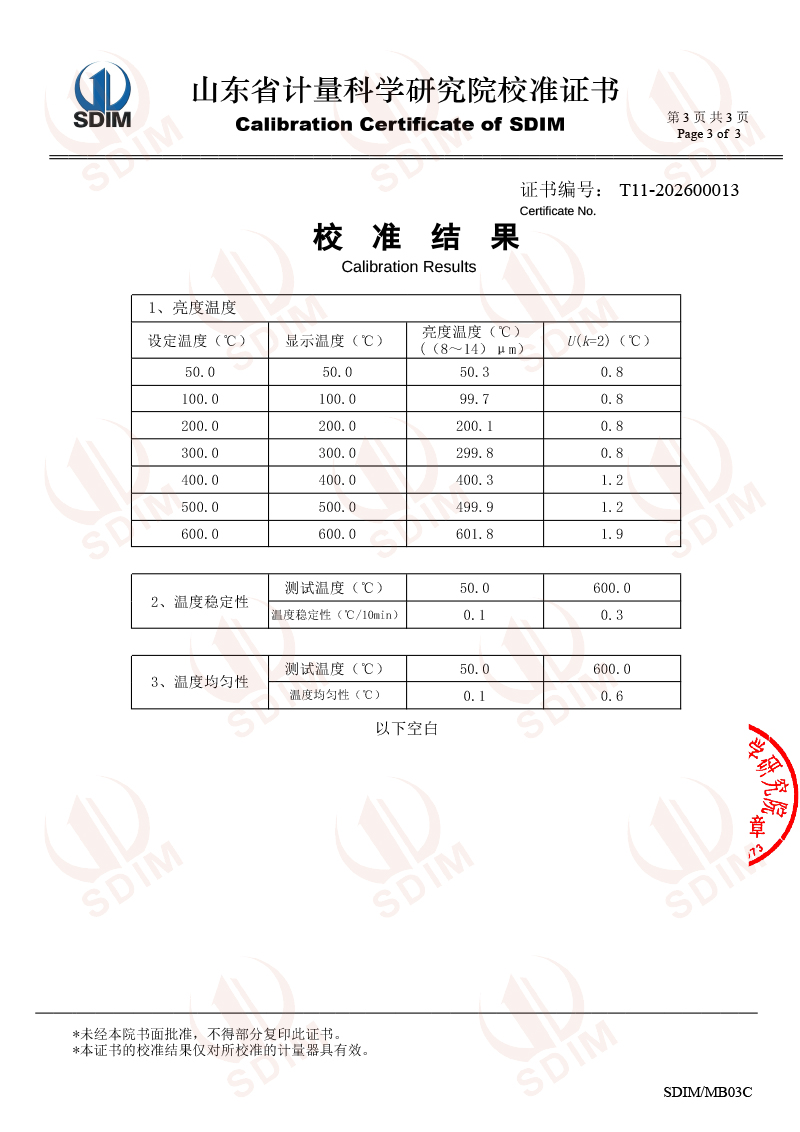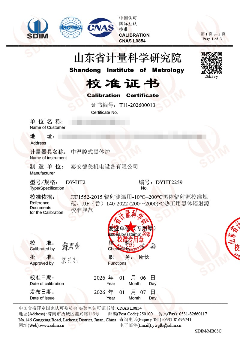 中溫腔式黑體校準(zhǔn)證書 2026-1-8 本文被閱讀 668 次