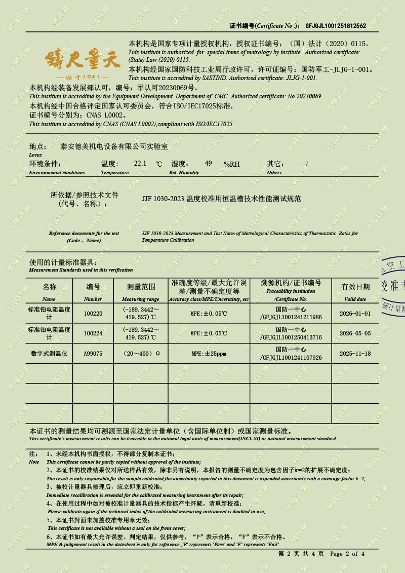 高精度恒溫油槽(70-300℃)校準證書 2025-6-25 本文被閱讀 4253 次