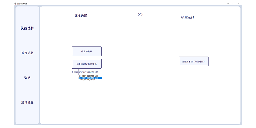 溫度變送器計量校準上位機軟件,此軟件適合溫度變送器的輸出電流采集,軟件需要溫度變送器(帶傳感器)配套標準器、恒溫設備及相應數(shù)字萬用表。軟件可選擇多個被檢傳感器,可設置采集次數(shù),及溫度個數(shù)及溫度點。軟件可輸入委托單位,型號名稱出廠編號及準確度等級及制造單位。