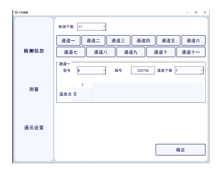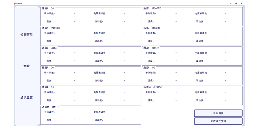 此套軟件可讀取1-11路標(biāo)準(zhǔn)通道的數(shù)字萬用表的電壓數(shù)值,標(biāo)準(zhǔn)溫度值,并一鍵轉(zhuǎn)換溫度值,并實(shí)現(xiàn)溫度波動(dòng)度計(jì)算,可確定干體溫度校驗(yàn)爐與標(biāo)準(zhǔn)器溫度的差值??梢绘I生成證書數(shù)據(jù)。