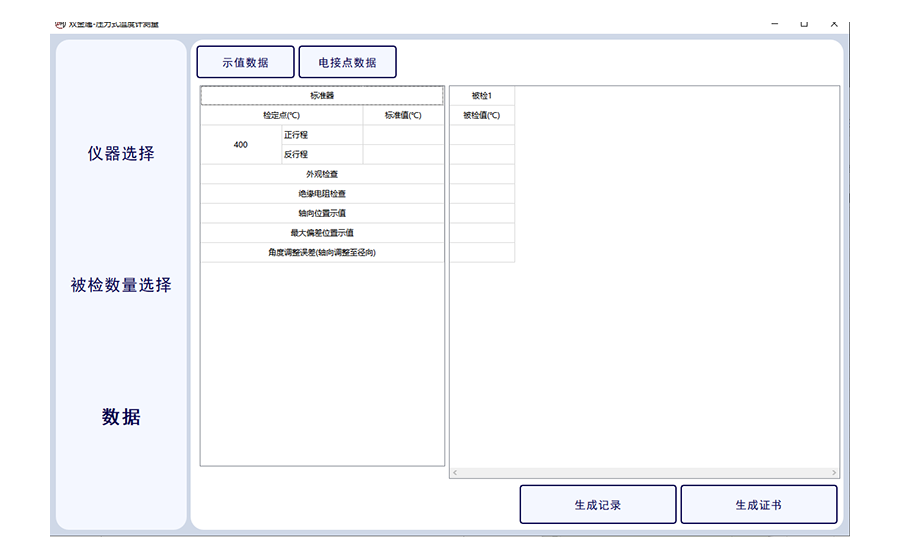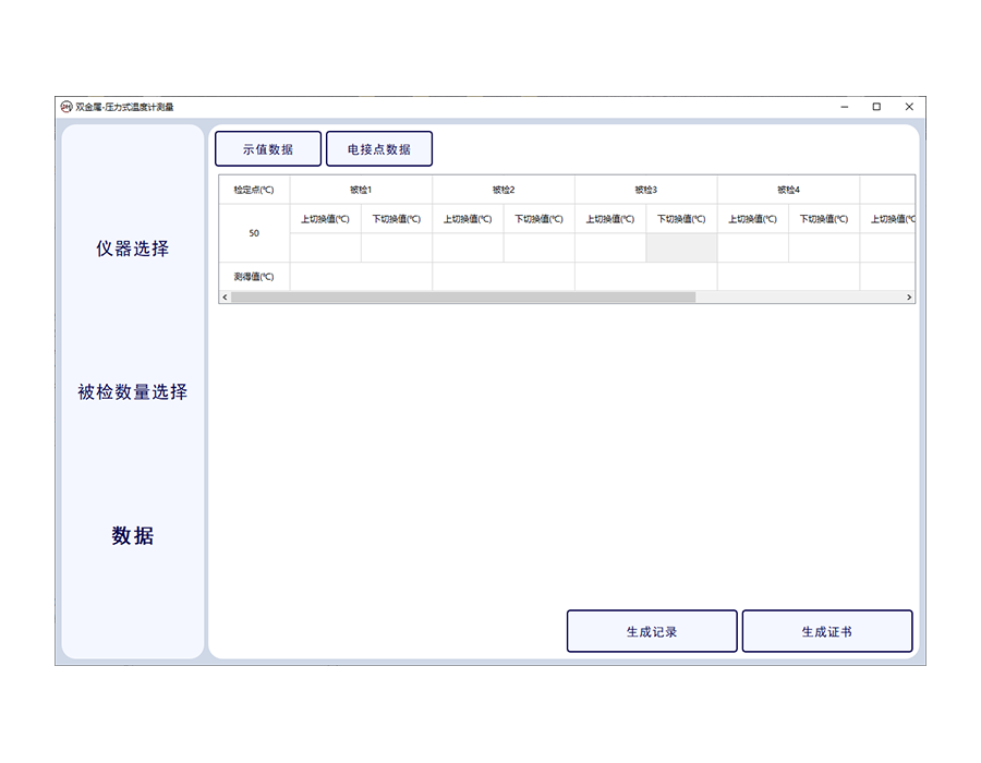 3.軟件可通過被測傳感器數(shù)據(jù),實(shí)現(xiàn)數(shù)據(jù)的記錄與證書生成