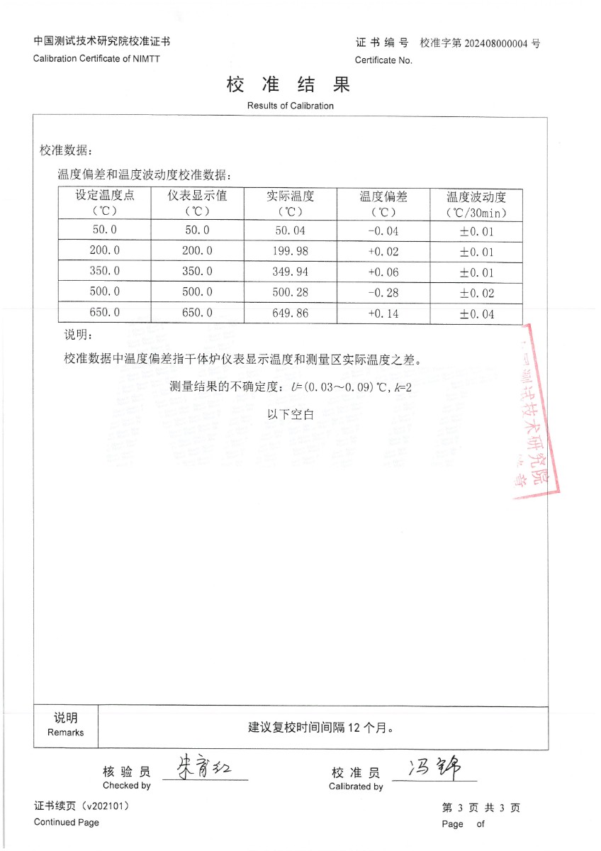 干體爐301(室溫+5℃~650℃)校準證書 2024-8-5 本文被閱讀 7918 次
