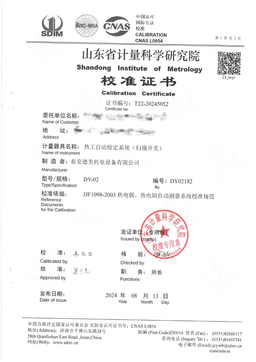 自動(dòng)檢定系統(tǒng)校準(zhǔn)證書(shū) 2024-8-22 本文被閱讀 7529 次
