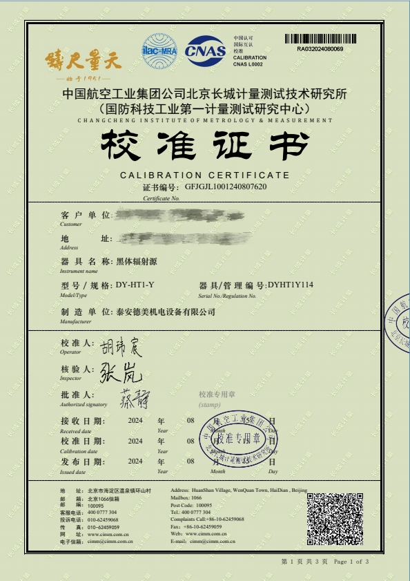 黑體輻射源-(-50~80(100℃))校準(zhǔn)證書(shū) 2024-8-29 本文被閱讀 8234 次
