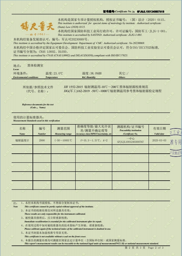 紅外黑體,室溫+5-300℃校準證書 2024-8-29 本文被閱讀 9056 次
