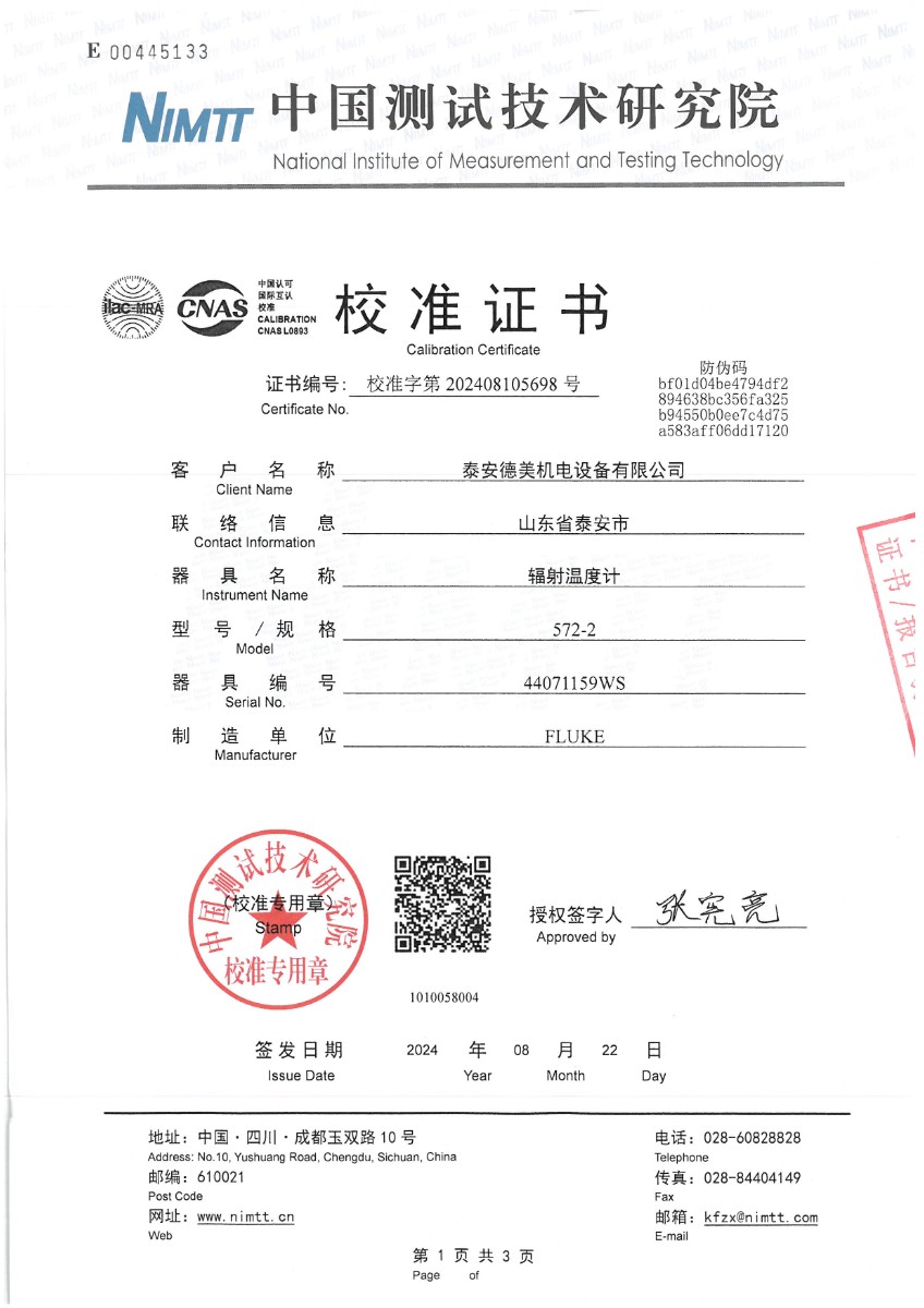 | 上一條:高精度數(shù)字溫度計(jì)(-80~300℃)校準(zhǔn)證書(shū) | 下一條:DY-HT2M-C高溫面源黑體爐(100mm) |
