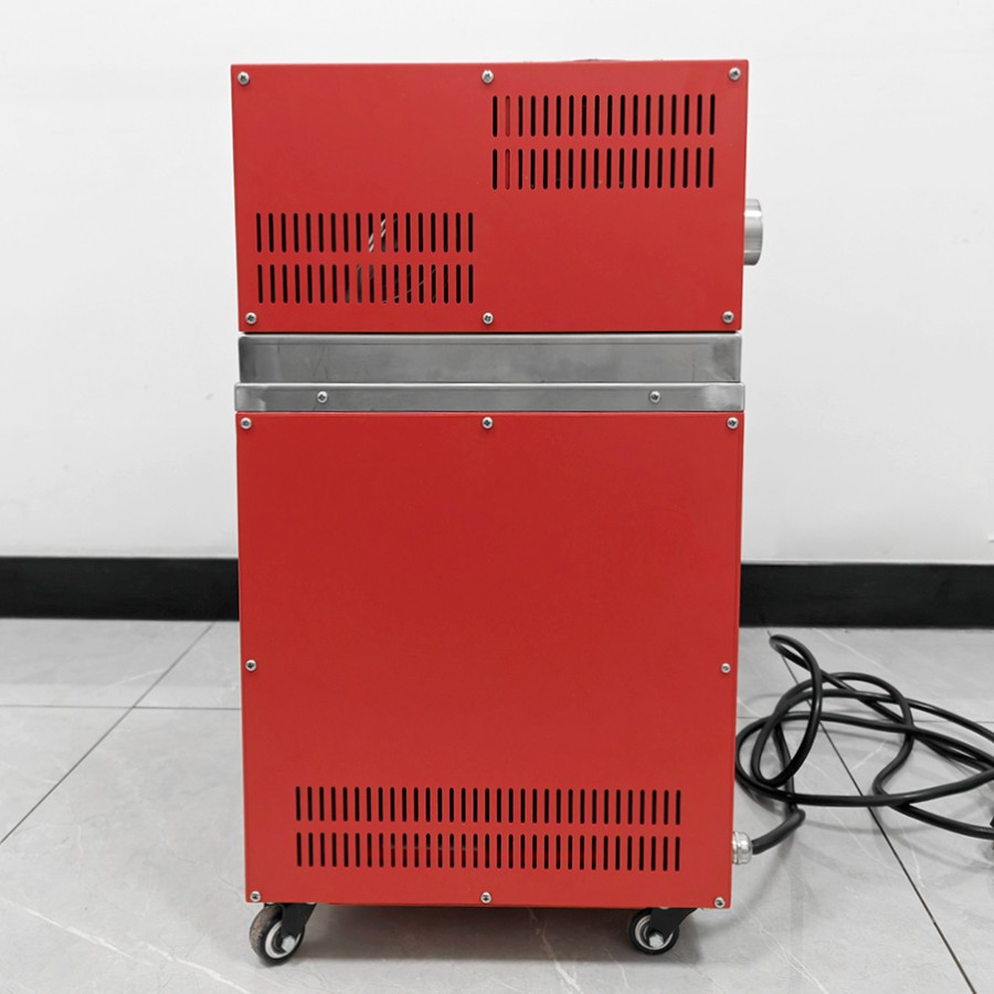 產(chǎn)品采用先進(jìn)的自動(dòng)控制系統(tǒng),界面友好,操作方便,控制精度高。主要是由加熱系統(tǒng)、控溫系統(tǒng)、攪拌系統(tǒng)所組成。槽體分混合區(qū)與工作區(qū)。在混合區(qū)內(nèi)由加熱器產(chǎn)生的熱量使槽內(nèi)固態(tài)鹽(介質(zhì))升溫熔化成鹽液,當(dāng)鹽液溫度上升到接近設(shè)定溫度時(shí),控溫系統(tǒng)根據(jù)感溫器測(cè)得的溫度來控制加熱器工作,再經(jīng)過攪拌系統(tǒng)的強(qiáng)烈攪拌充分均勻后的鹽液(介質(zhì))送入少受外界干擾的工作區(qū)。從而得到一個(gè)溫度穩(wěn)定溫場(chǎng)均勻的液體空間。