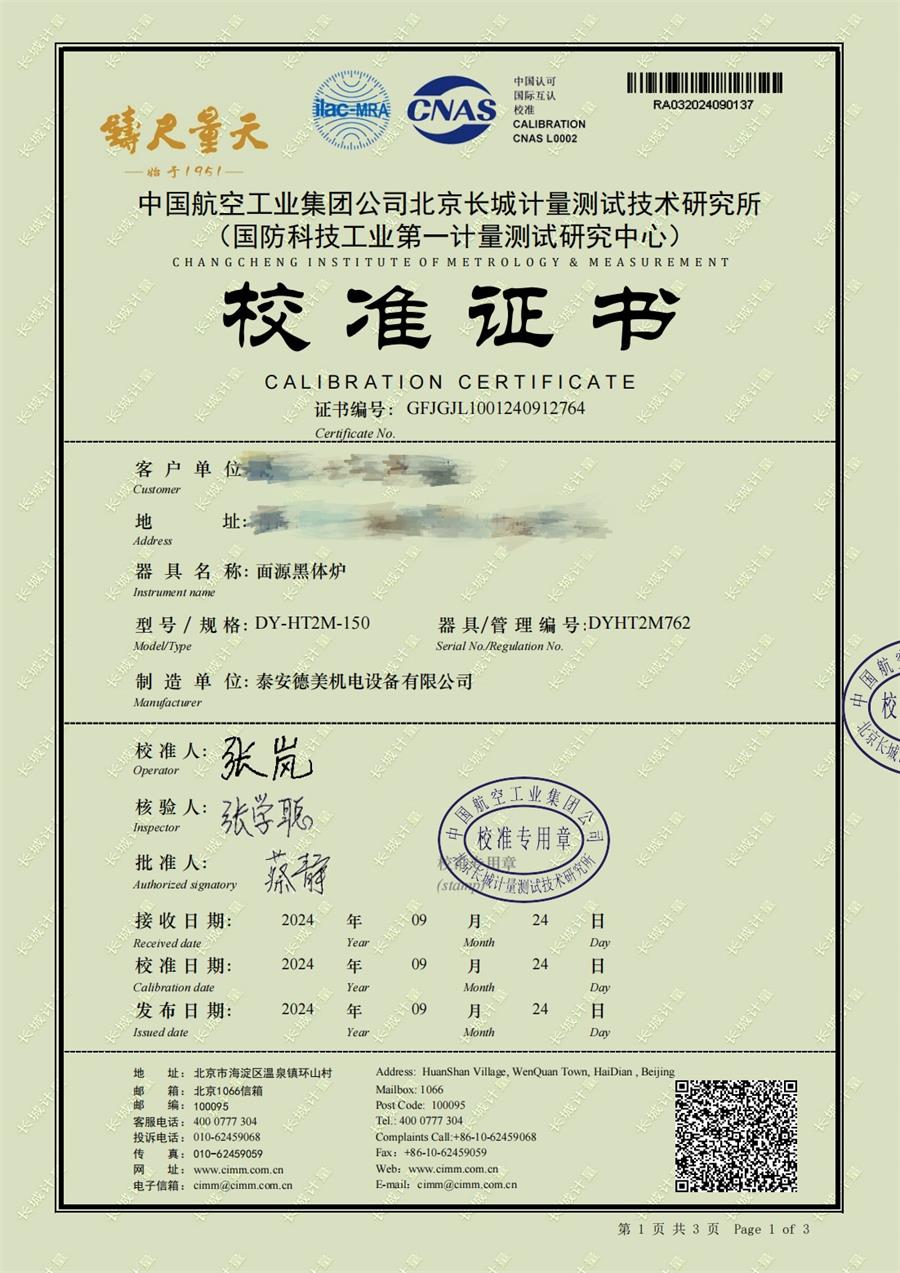| 上一條:黑體輻射源(50-700℃)校準(zhǔn)證書(shū) | 下一條:DY-HT2M-C高溫面源黑體爐(100mm) |