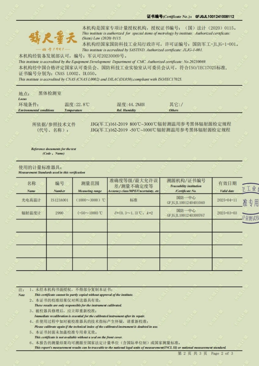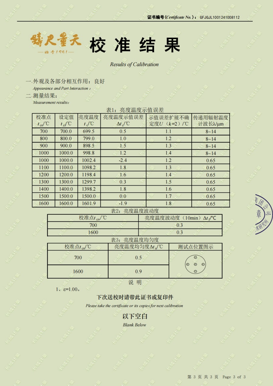 高溫黑體爐(700-1600℃)校準(zhǔn)證書 2024-11-6 本文被閱讀 7430 次