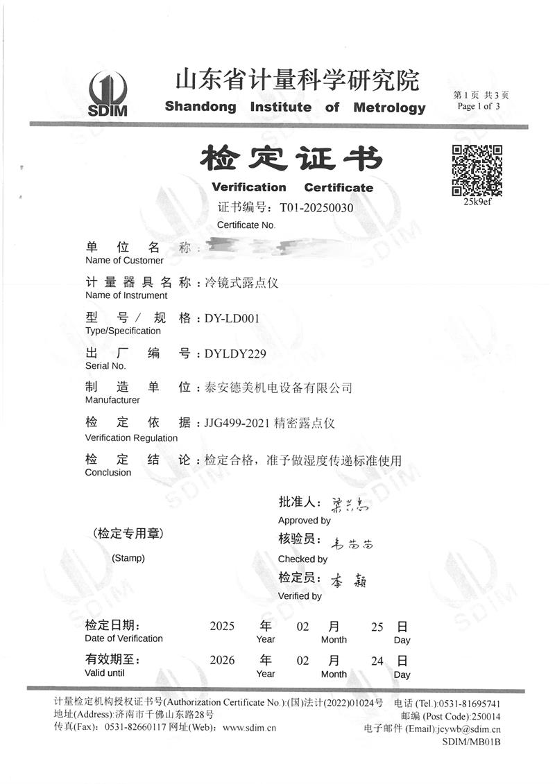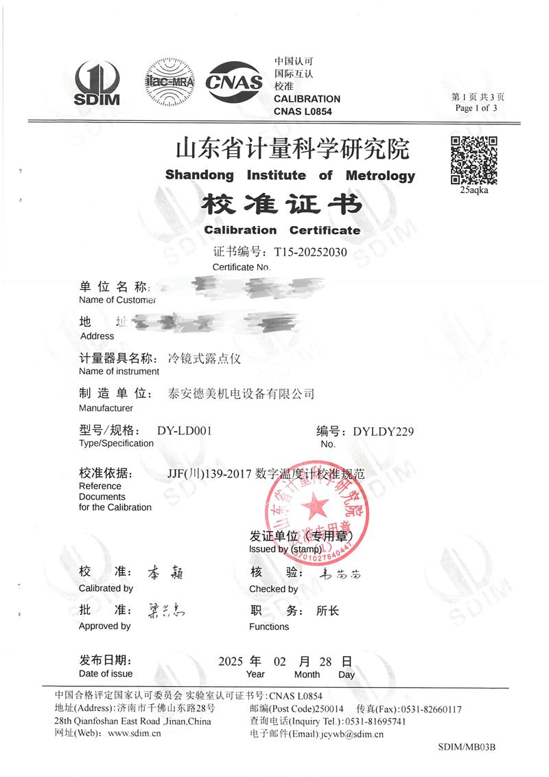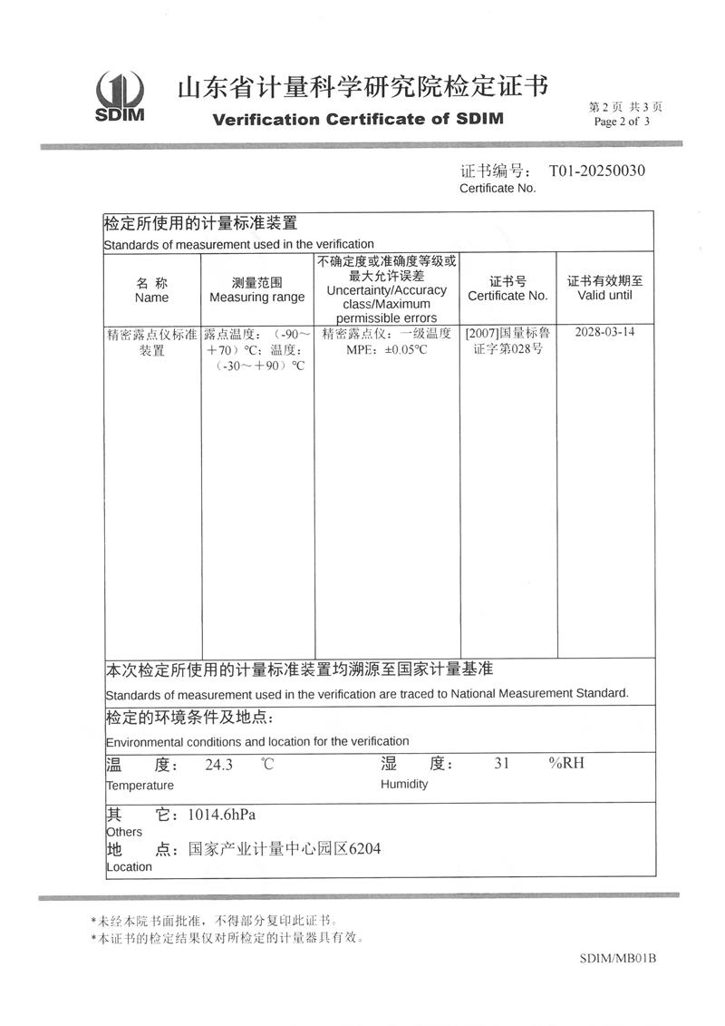 露點儀檢定、校準證書 2025-3-8 本文被閱讀 4794 次