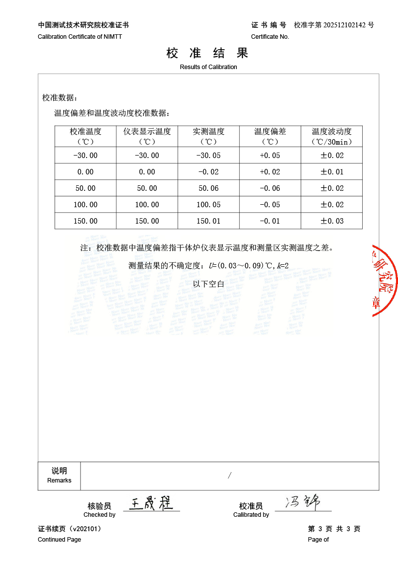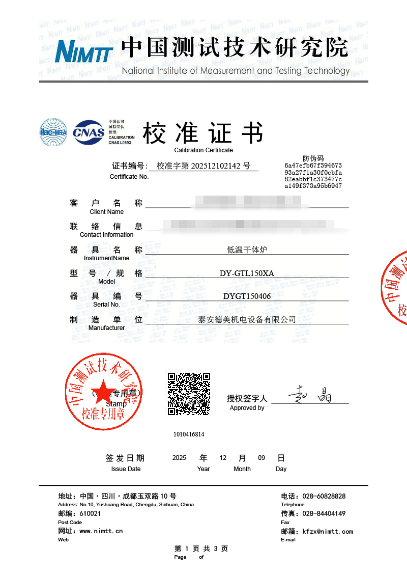 低溫干體爐校準證書 2025-12-11 本文被閱讀 1499 次