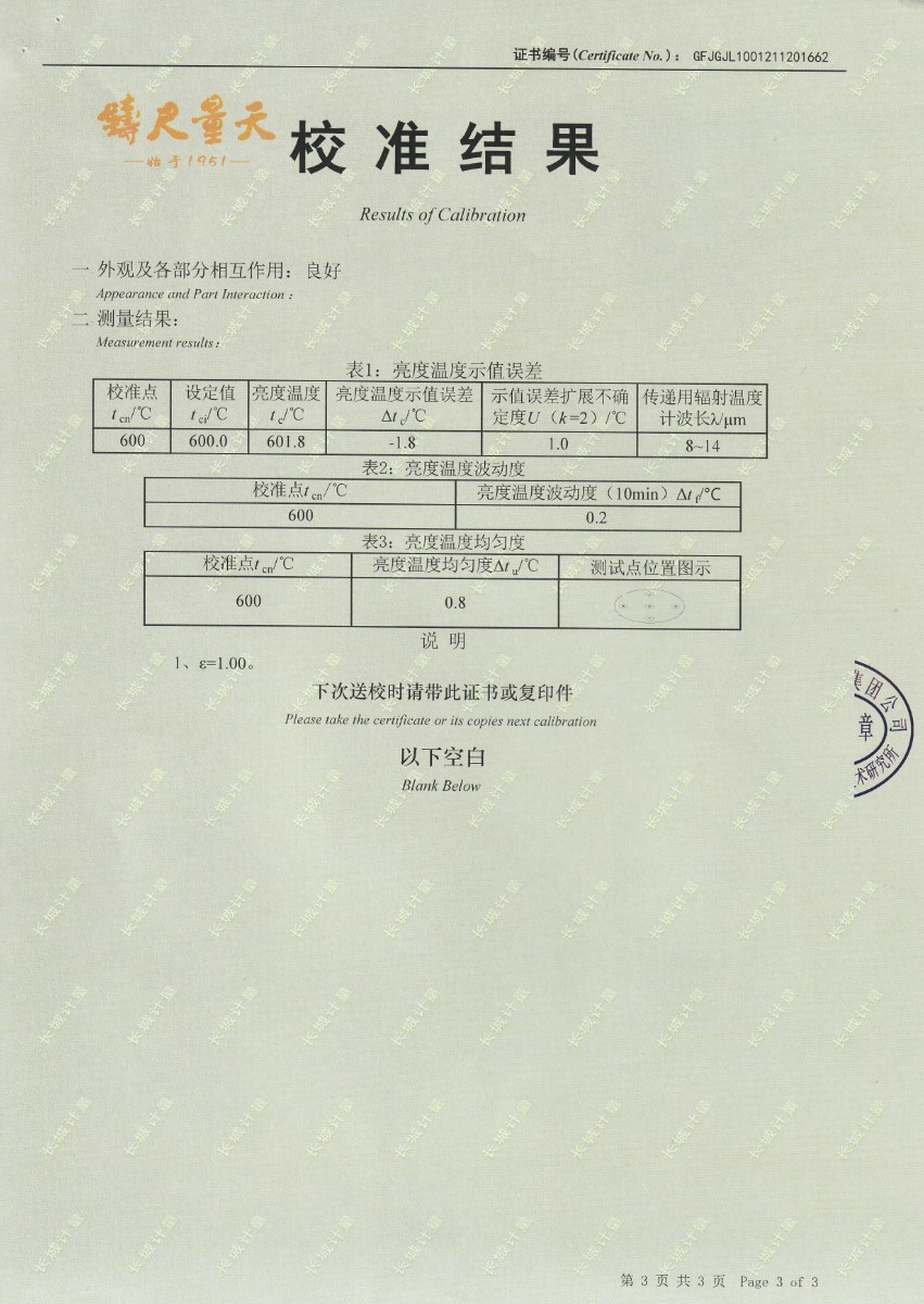 | 上一條:南京理工大學(xué)-黑體輻射源校準(zhǔn)證書600-1200℃ | 下一條:DY-HT2M-C高溫面源黑體爐(100mm) |