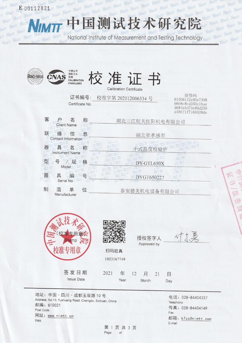 湖北三江航天紅陽機電有限公司-干式溫度校驗爐 2021-12-27 本文被閱讀 13808 次