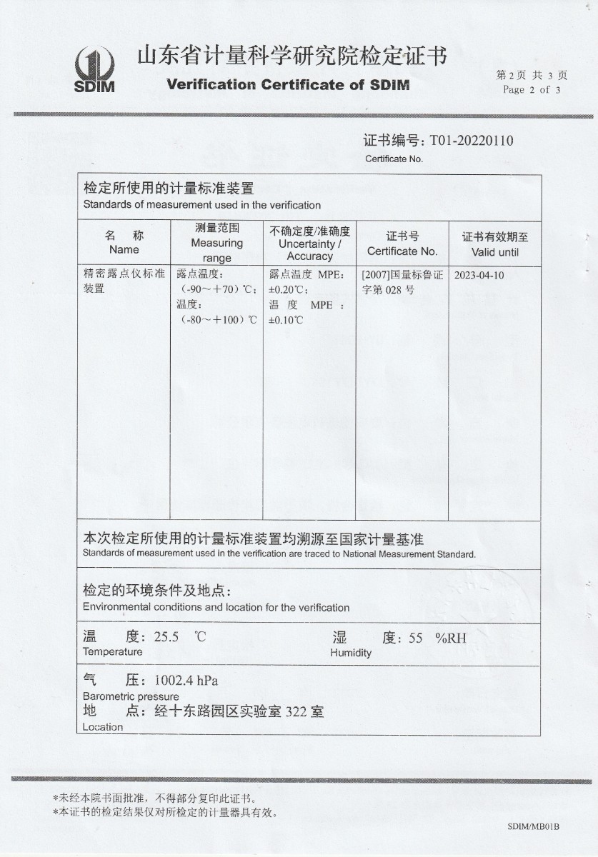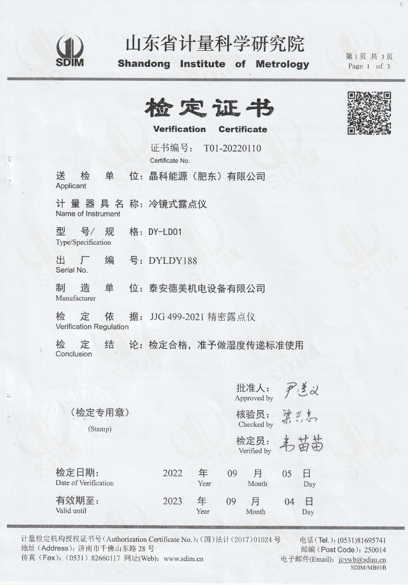 晶科能源(肥東)有限公司-冷鏡式露點(diǎn)儀檢定證書 2022-9-26 本文被閱讀 16928 次