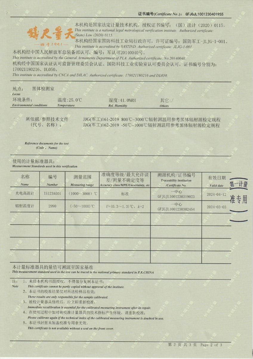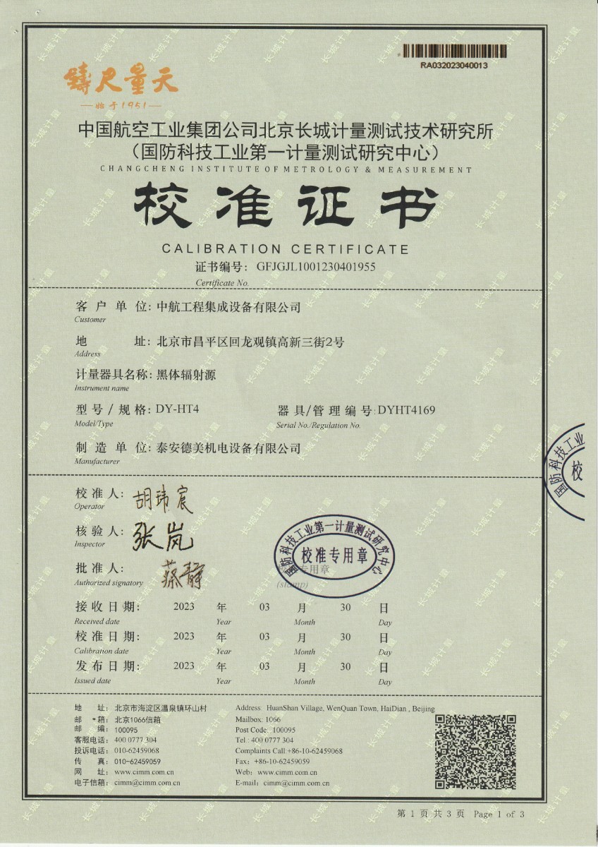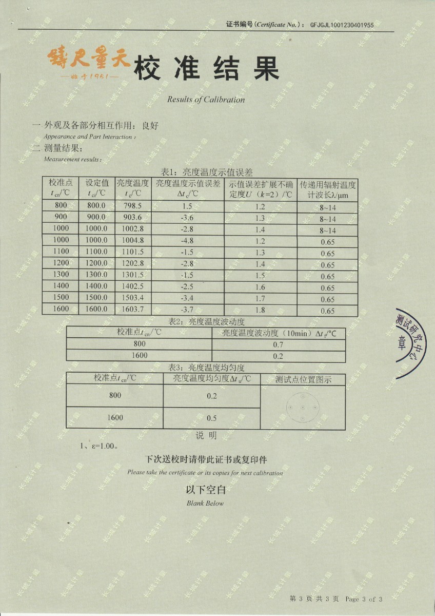 | 上一條:浙江弘志計量測試有限公司 黑體輻射源 校準(zhǔn)證書 | 下一條:DY-HT2M-C高溫面源黑體爐(100mm) |