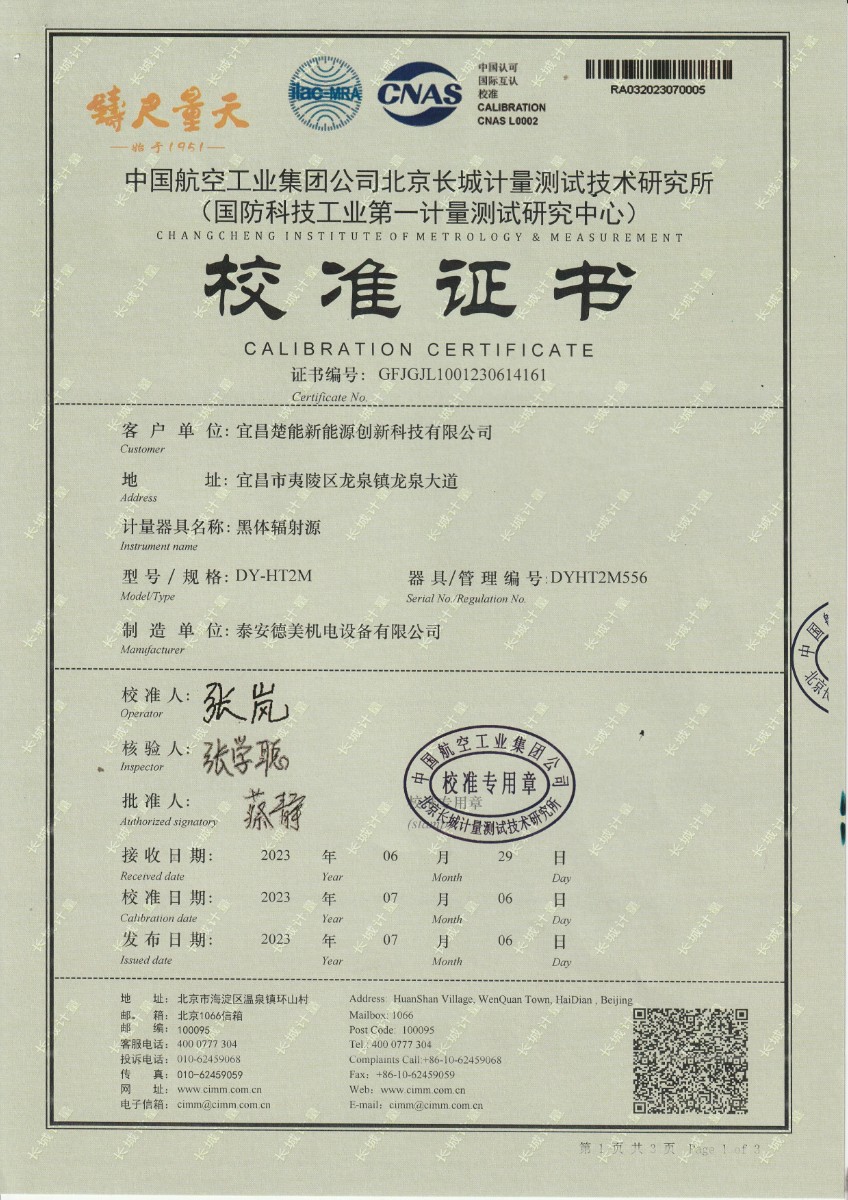 宜昌楚能新能源創(chuàng)新科技有限公司-黑體輻射源 2023-7-17 本文被閱讀 15937 次