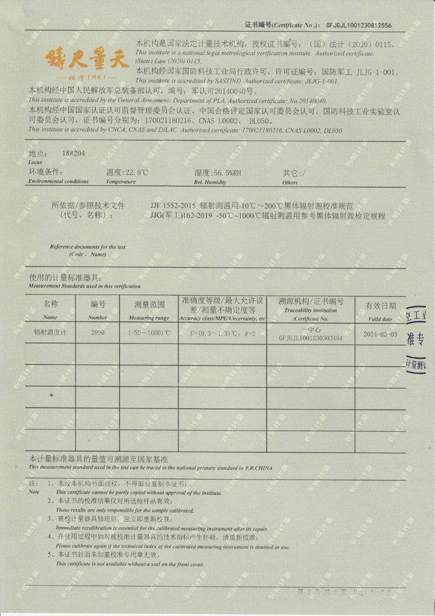 面源黑體爐DYHT1M140校準(zhǔn)證書(shū) 2023-9-20 本文被閱讀 11375 次