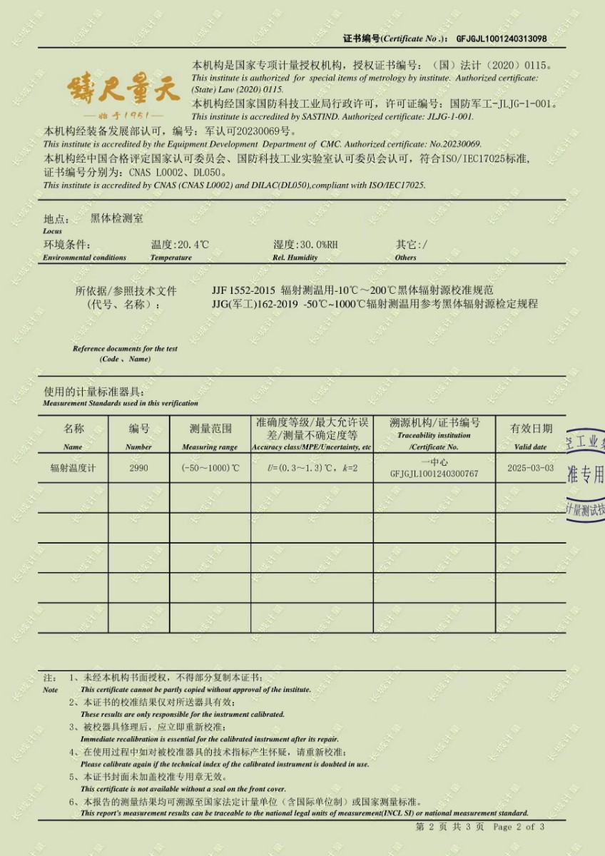 黑體輻射源校準(zhǔn)證書 2024-4-11 本文被閱讀 6914 次