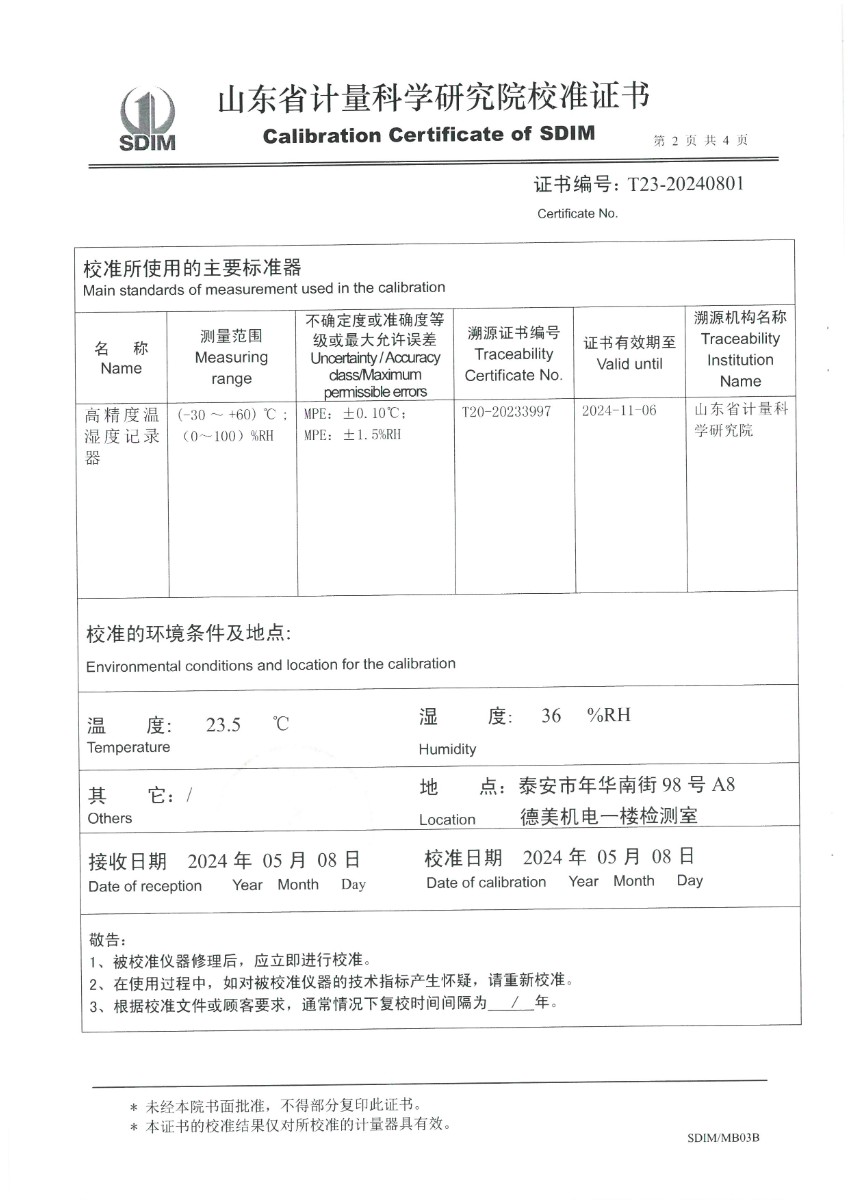 溫濕度檢定箱校準(zhǔn)證書(shū) 2024-5-11 本文被閱讀 8391 次