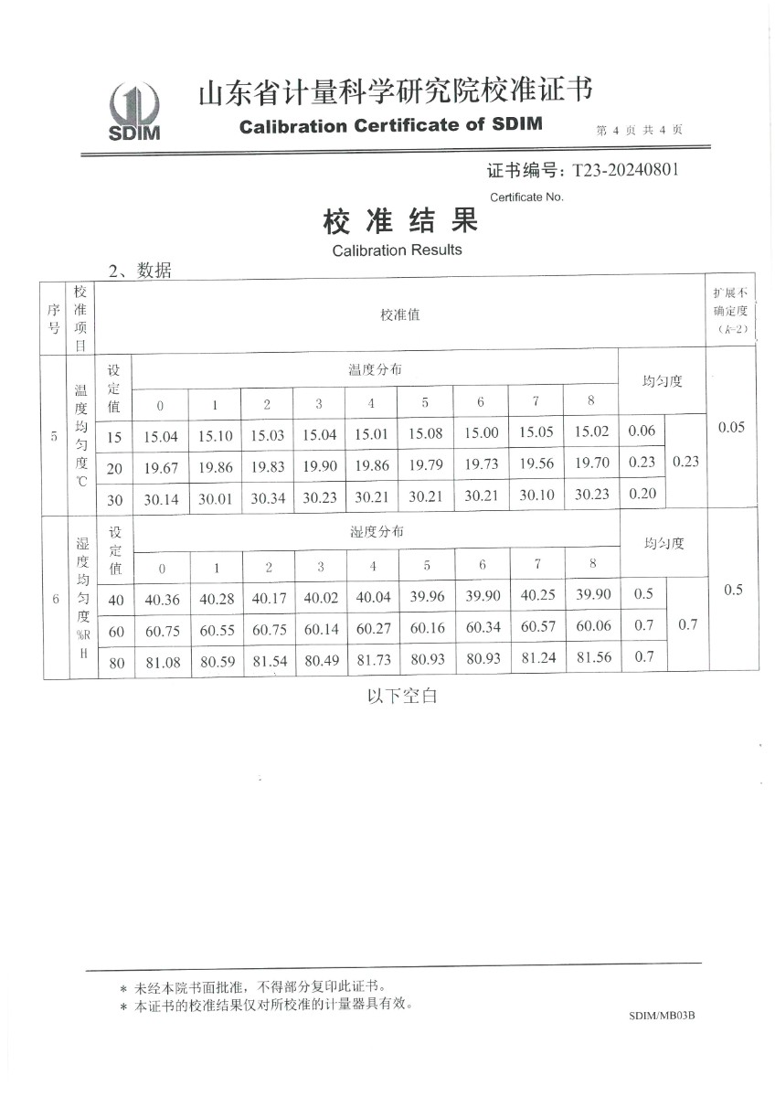 溫濕度檢定箱校準(zhǔn)證書(shū)