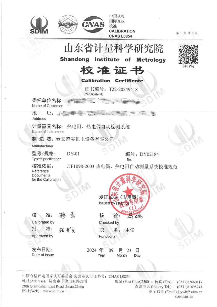 | 上一條:貴金屬熱電偶檢定爐(800~1600℃)校準(zhǔn)證書 | 下一條:DY-HT2M-C高溫面源黑體爐(100mm) |