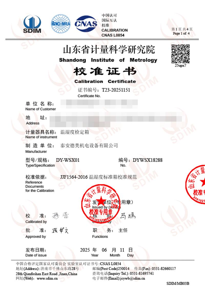 溫濕度檢定箱(-5-65℃)校準證書 2025-6-13 本文被閱讀 4086 次