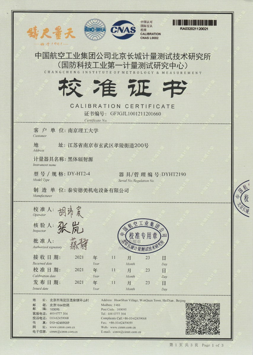 | 上一條:南京理工大學(xué)-黑體輻射源校準(zhǔn)證書180-500℃ | 下一條:DY-HT1-G創(chuàng)新型防結(jié)霜低溫黑體爐(-30℃~80℃) |