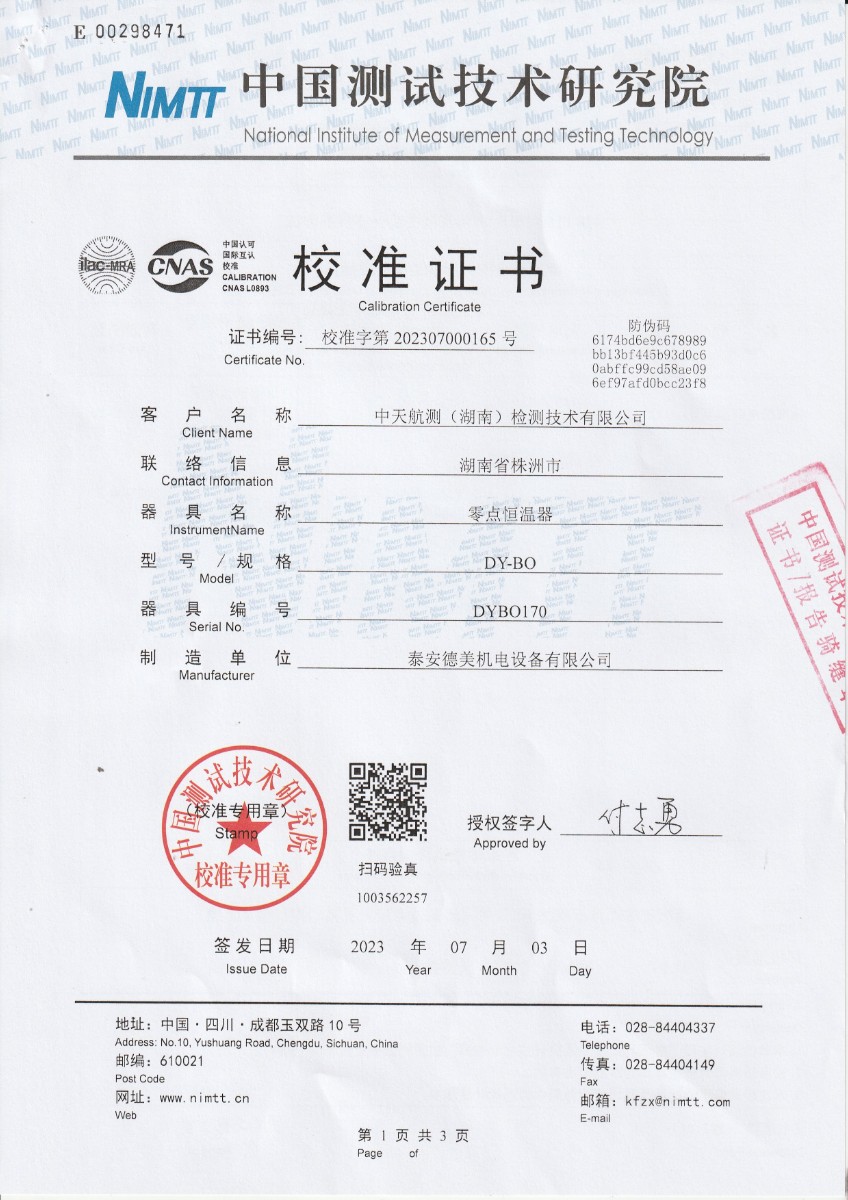 中天航測(湖南)檢測技術有限公司-零點恒溫器 2023-7-13 本文被閱讀 13778 次