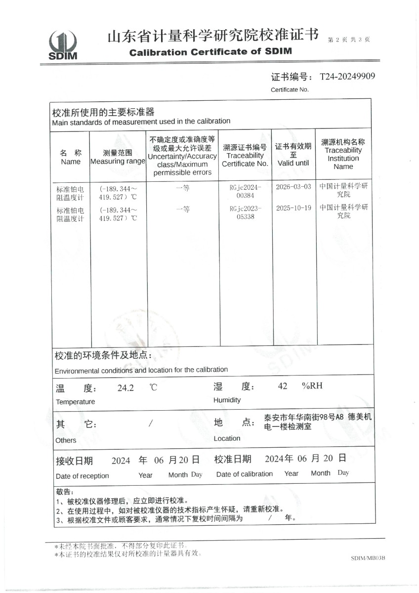 | 上一條:中溫干體爐(50~650℃)校準(zhǔn)證書 | 下一條:濕度發(fā)生器-校準(zhǔn)證書 |