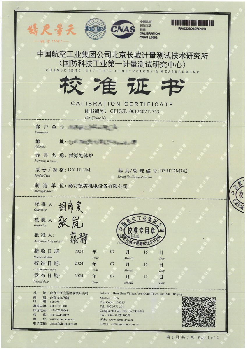 | 上一條:低溫浴式(-50~80℃)校準(zhǔn)證書 | 下一條:DY-HT2M-C高溫面源黑體爐(100mm) |