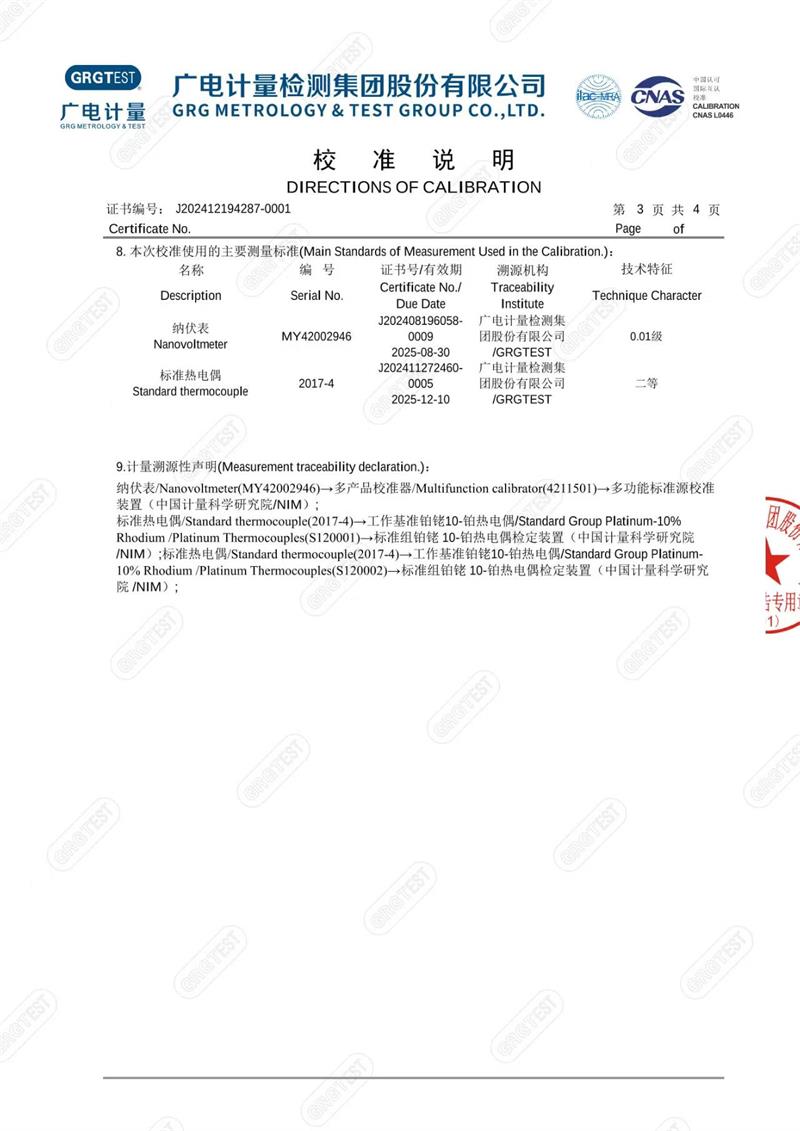 高溫干體爐(300-1200℃)校準(zhǔn)證書 2025-1-13 本文被閱讀 6845 次