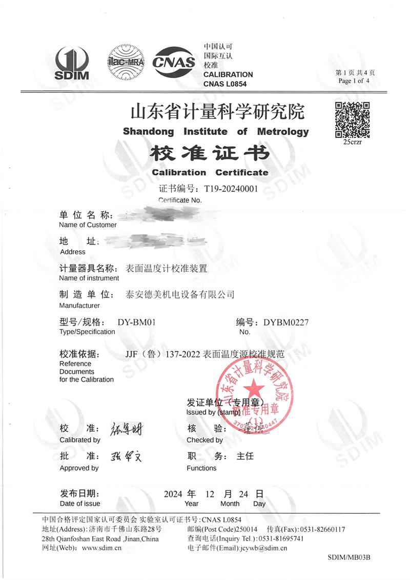 表面溫度計(jì)校準(zhǔn)裝置(室溫+5℃~400℃)校準(zhǔn)證書(shū) 2025-1-25 本文被閱讀 6225 次