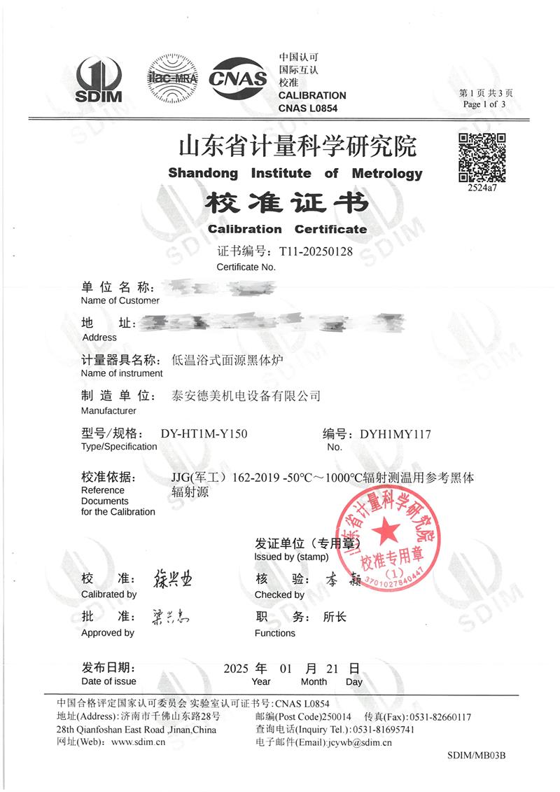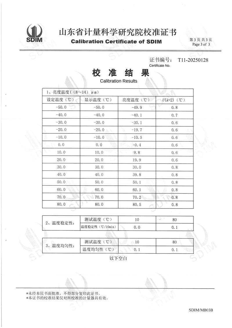 低溫浴式面源黑體爐(-50℃~80℃)校準(zhǔn)證書 2025-1-25 本文被閱讀 6246 次