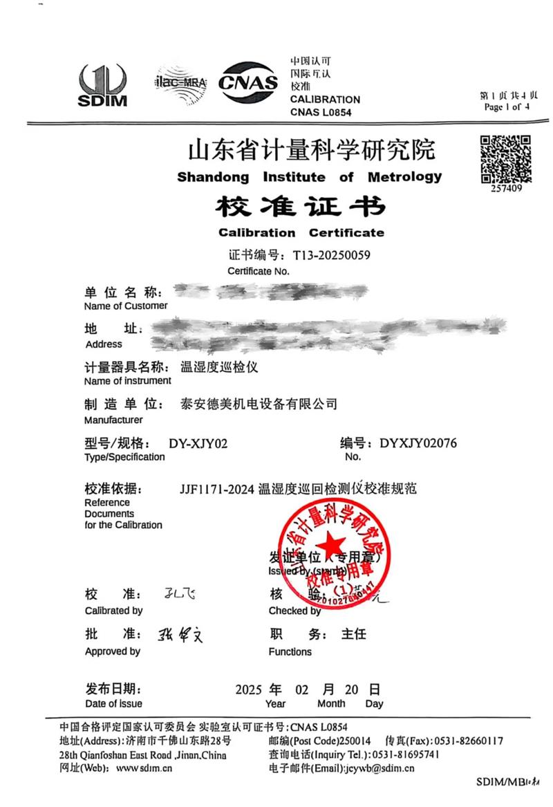 溫濕度巡檢儀校準證書 2025-2-22 本文被閱讀 5547 次