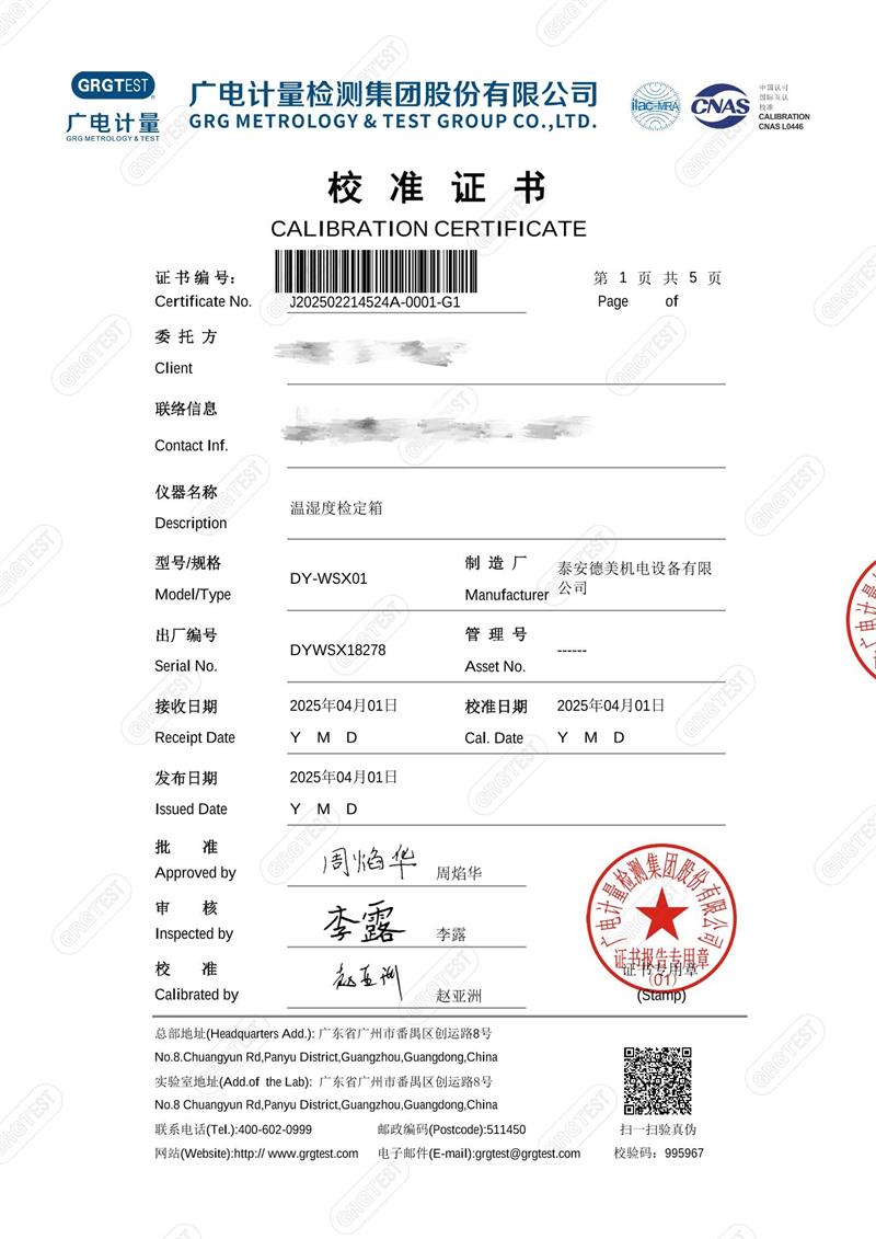 溫濕度檢定箱18278(-5~65℃)校準證書 2025-4-18 本文被閱讀 4086 次