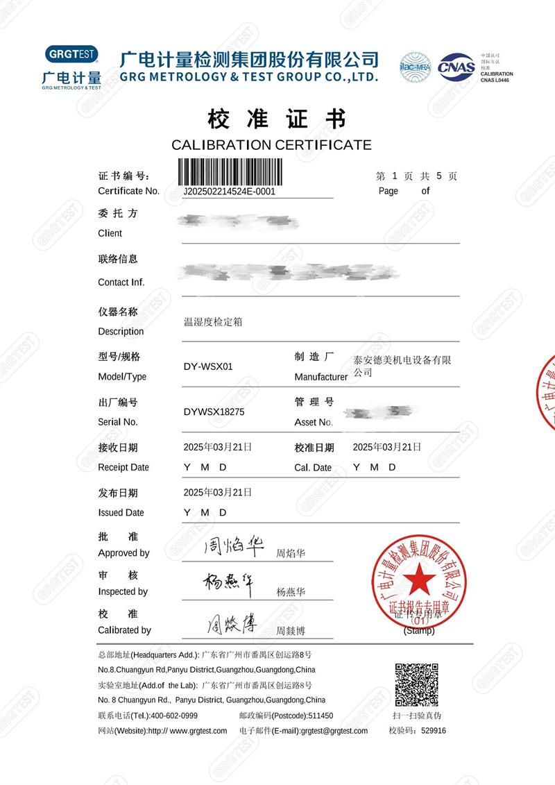 溫濕度檢定箱18275(-5~65℃)校準(zhǔn)證書(shū) 2025-4-18 本文被閱讀 4957 次