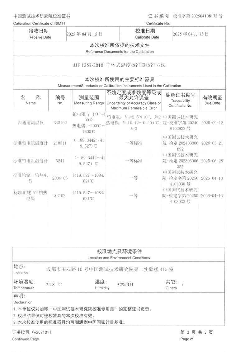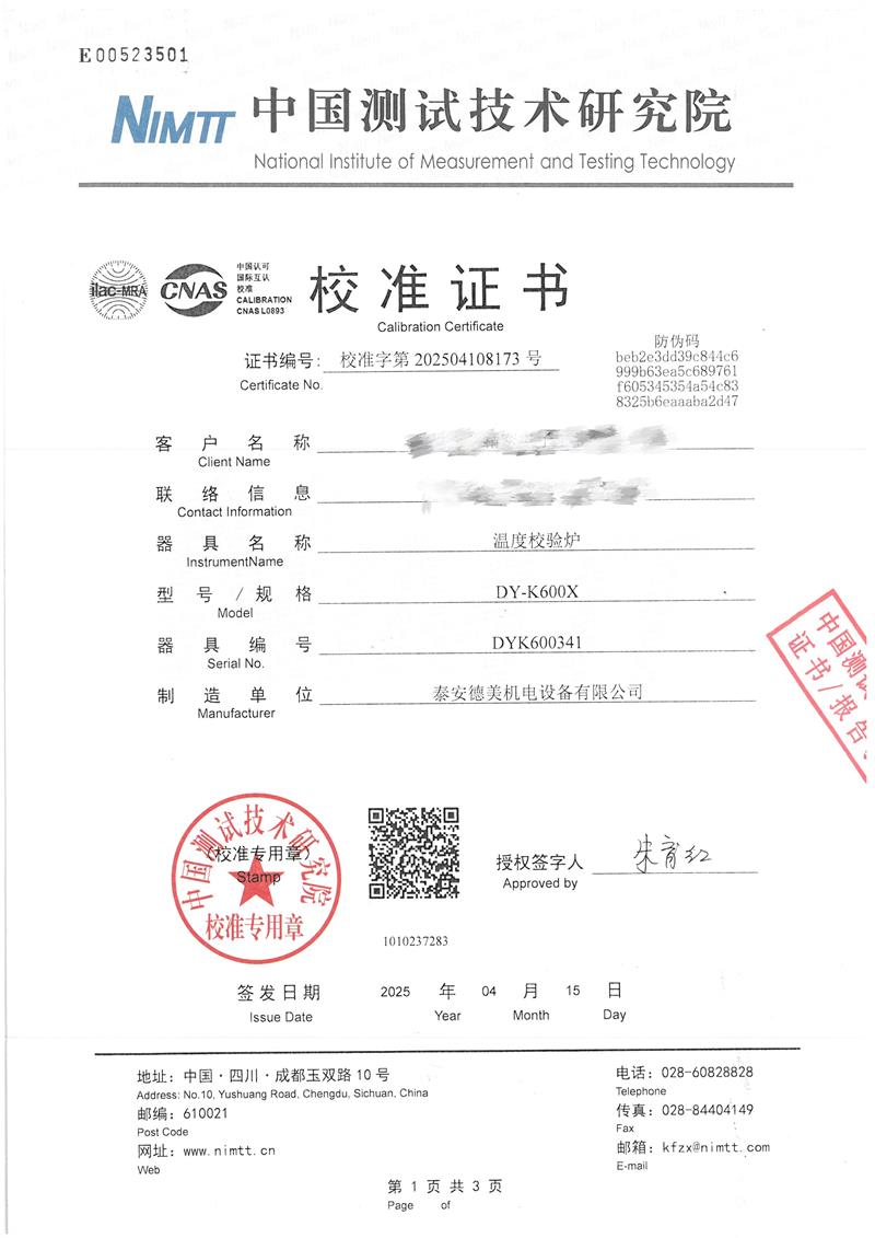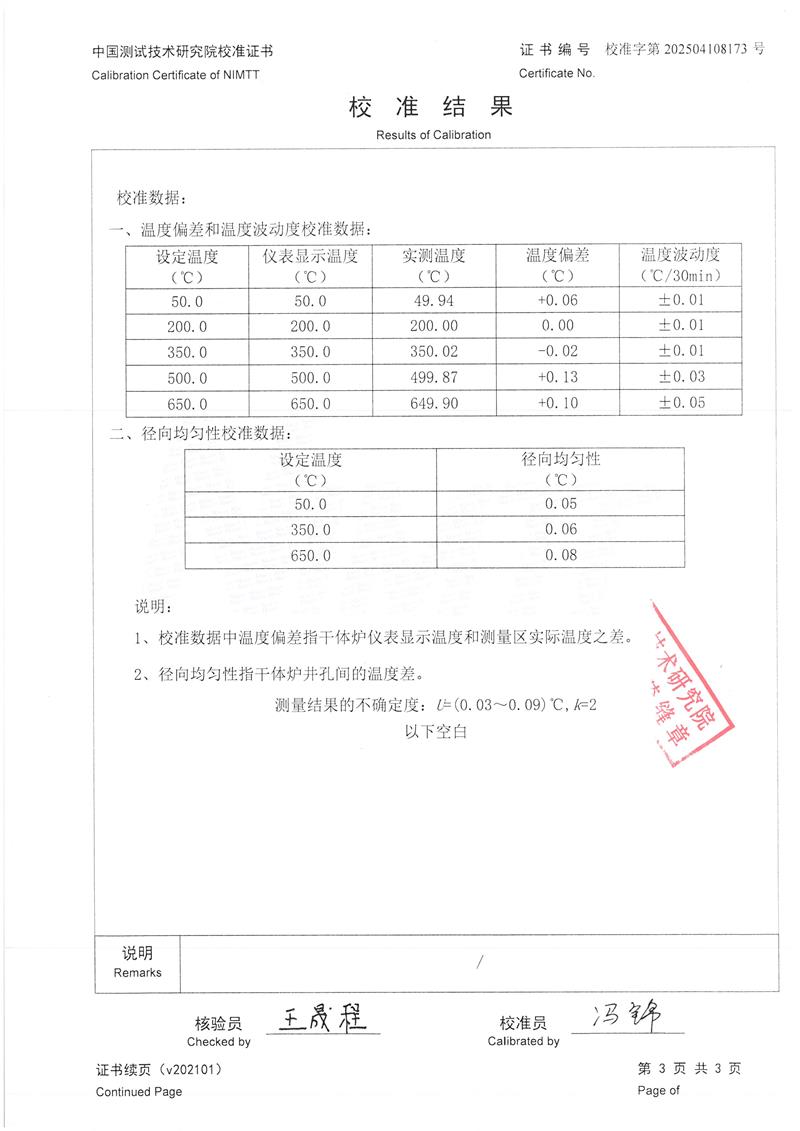 溫度校驗爐(50~650℃)校準證書 2025-4-30 本文被閱讀 3980 次
