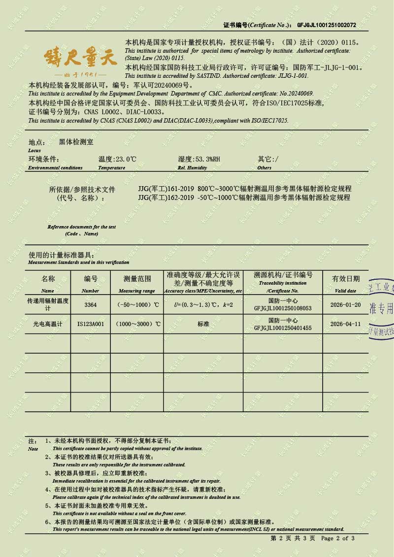 高溫腔式黑體輻射源(700-1600℃)校準證書 2025-10-30 本文被閱讀 1623 次
