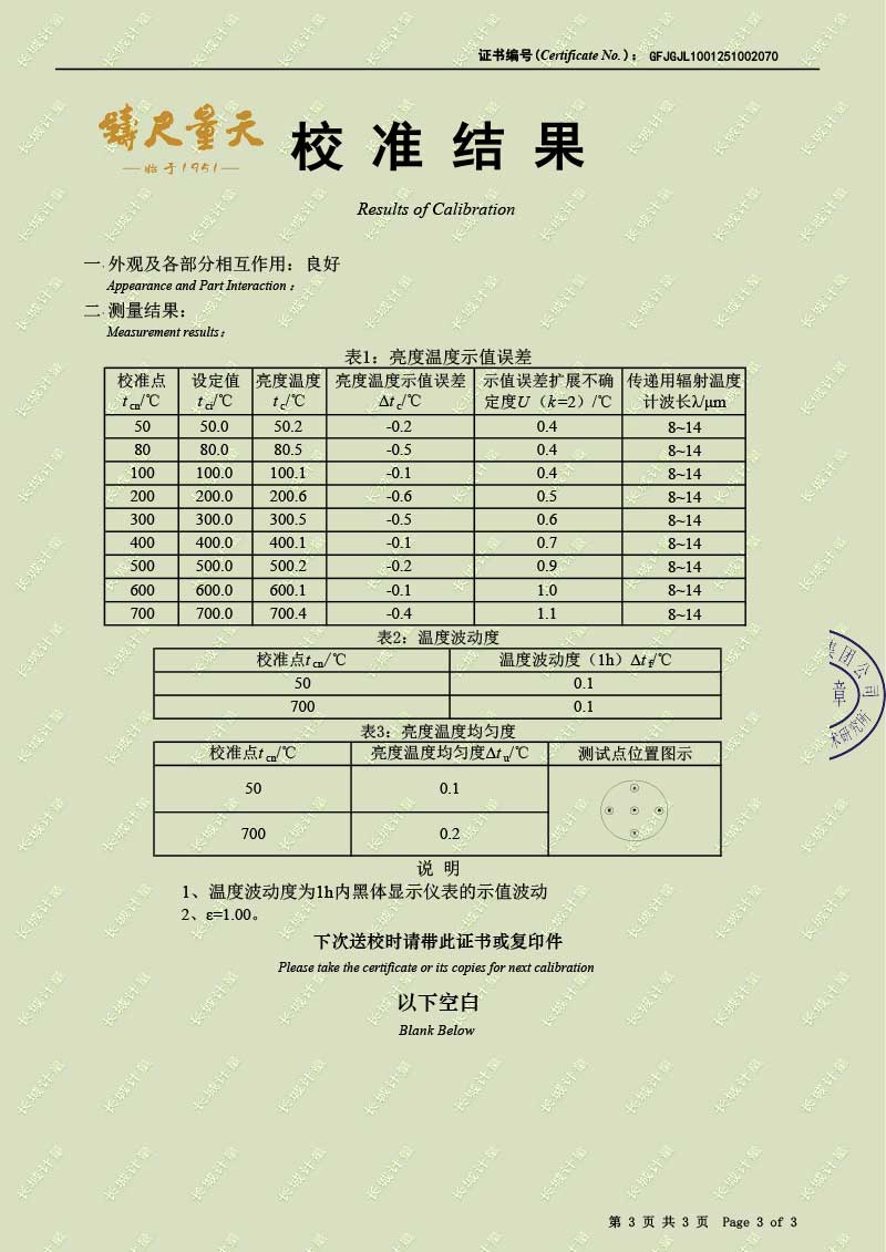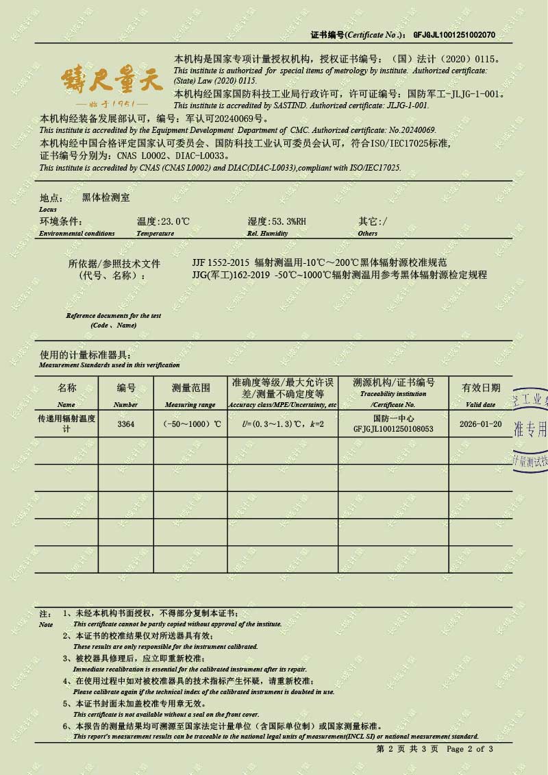 | 上一條:高溫腔式黑體輻射源(700-1600℃)校準證書 | 下一條:DY-HT2M-C高溫面源黑體爐(100mm) |